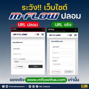 โปรดระวัง ลิงก์เว็บไซต์ M-Flow ปลอม ซึ่งมิจฉาชีพจะส่งลิงก์ปลอมที่มีความคล้ายคลึง หรือ มีคำว่า M-Flo