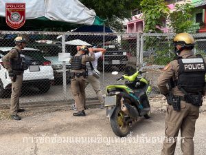 โดยก่อนเริ่มซักซ้อมแผนฯ ได้มีการประชุมชี้แจง และให้ความรู้เกี่ยวกับการสังเกตจดจำรูปพรรณสัณฐานคนร้าย การแต่งกาย อาวุธ ยานพาหนะที่ใช้ในการก่อเหตุ รวมถึงการแจ้งเหตุฉุกเฉิน เพื่อให้เกิดความเข้าใจและสามารถแก้ไขปัญหาได้เมื่อเกิดเหตุการณ์ในสถานที่จริง