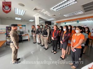 วันที่ 22 ส.ค.66 เวลา 15.30 น. พ.ต.อ.รัตนสุข คำวงศ์ ผกก.สภ.ชุมแพ, พ.ต.ท.ธรรมวิทย์ พลแก้ว รอง ผกก.ป.สภ.ชุมแพ มอบหมายให้ พ.ต.ท.บุญเหลือ คำศรี สวป.สภ.ชุมแพ, ร.ต.อ.สุริยา ถวัลย์ชัยวัฒน์ รอง สวป.สภ.ชุมแพ พร้อมด้วยเจ้าหน้าที่สายตรวจ สภ.ชุมแพ, เจ้าหน้าที่ธนาคารอาคารสงเคราะห์สาขาชุมแพ ร่วมทำการซักซ้อมแผนเผชิญเหตุจี้ชิงทรัพย์ธนาคาร ตามแผนป้องกันและรับมือกรณีเกิดเหตุฯ ณ ธนาคารอาคารสงเคราะห์ สาขาชุมแพ