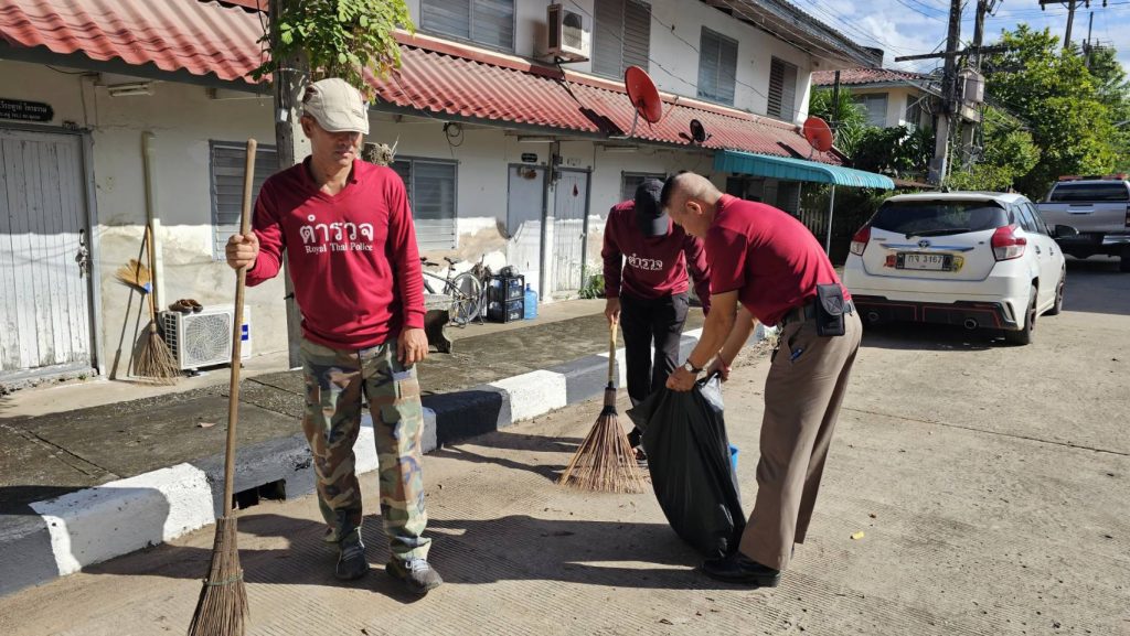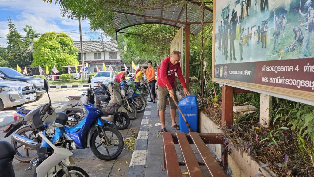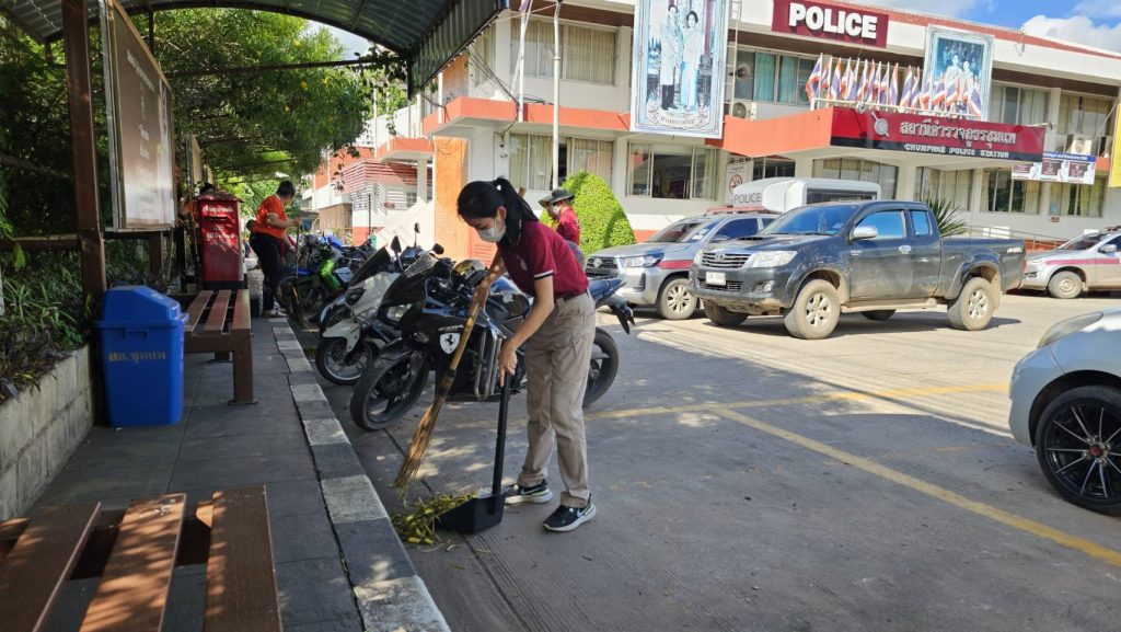 วันที่ 21 มิ.ย. 66 ตั้งแต่เวลา 15.00 น. พ.ต.อ.รัตนสุข คำวงศ์ ผกก.สภ.ชุมแพ, พ.ต.ท.บุญเหลือ คำศรี สวป.สภ.ชุมแพ, พ.ต.ท.หญิง นงค์คราญ หาญเชิงชัย สว.อก.สภ.ชุมแพ นำข้าราชการตำรวจ สภ.ชุมแพ ร่วมกันทำกิจกรรม 5ส. พัฒนา ปรับปรุงภูมิทัศน์ ตามแนวทางการยกระดับการบริการประชาชน บริเวณรอบอาคารที่ทำการ สภ.ชุมแพ, จุดบริการประชาชนประจำตำบล, บริเวณหน้าแฟลต 4 ชั้น และบริเวณอาคารบ้านพักเรือนแถวข้าราชการตำรวจ เพื่อสุขอนามัยที่ดี และเพื่อความสวยงามสะอาดตา