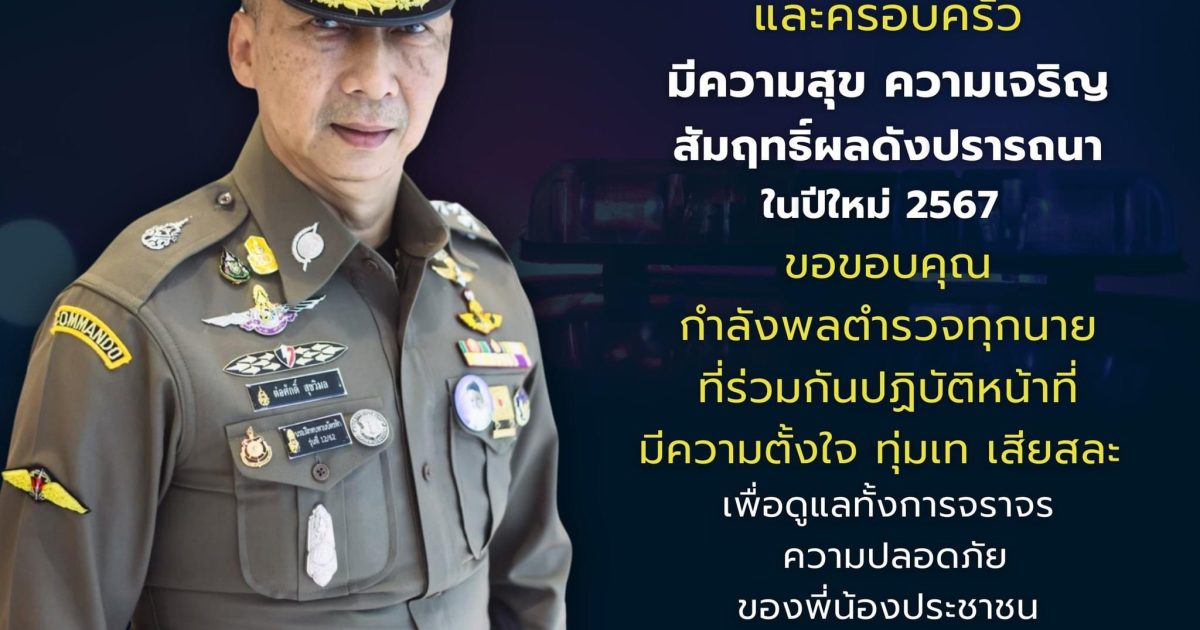 “ขอให้พี่น้องประชาชน เพื่อนข้าราชการตำรวจ และครอบครัว มีความสุข ความเจริญ สัมฤทธิ์ผลดังปรารถนา ในปีใหม่ 2567