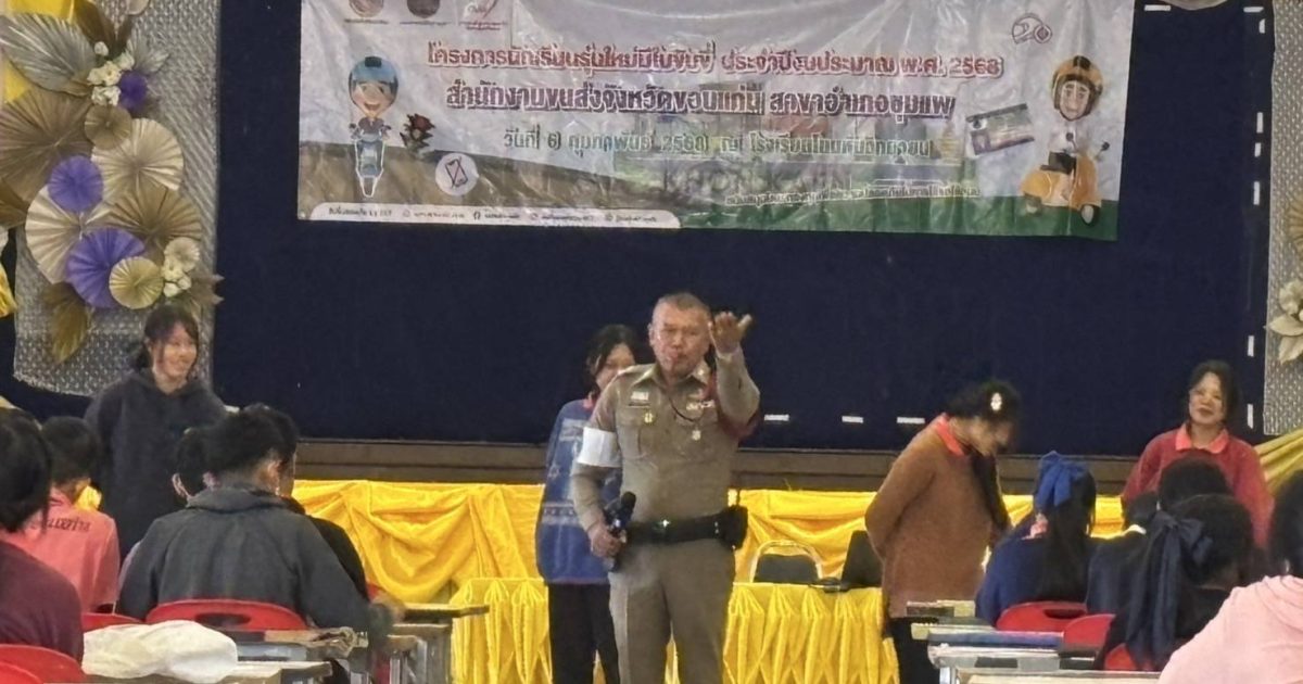 วิทยากรอบรม/บรรยายกฎหมายจราจรเบื้องต้น การขับขี่อย่างปลอดภัย มารยาทในการขับขี่ สัณญาณมือ/นกหวีด และกฎหมายที่เกี่ยวข้องฯ ณ โรงเรียนโนนหันวิทยายน อ.ชุมแพ จ.ขอนแก่น ผู้เข้าอบรมจำนวน 50 คน