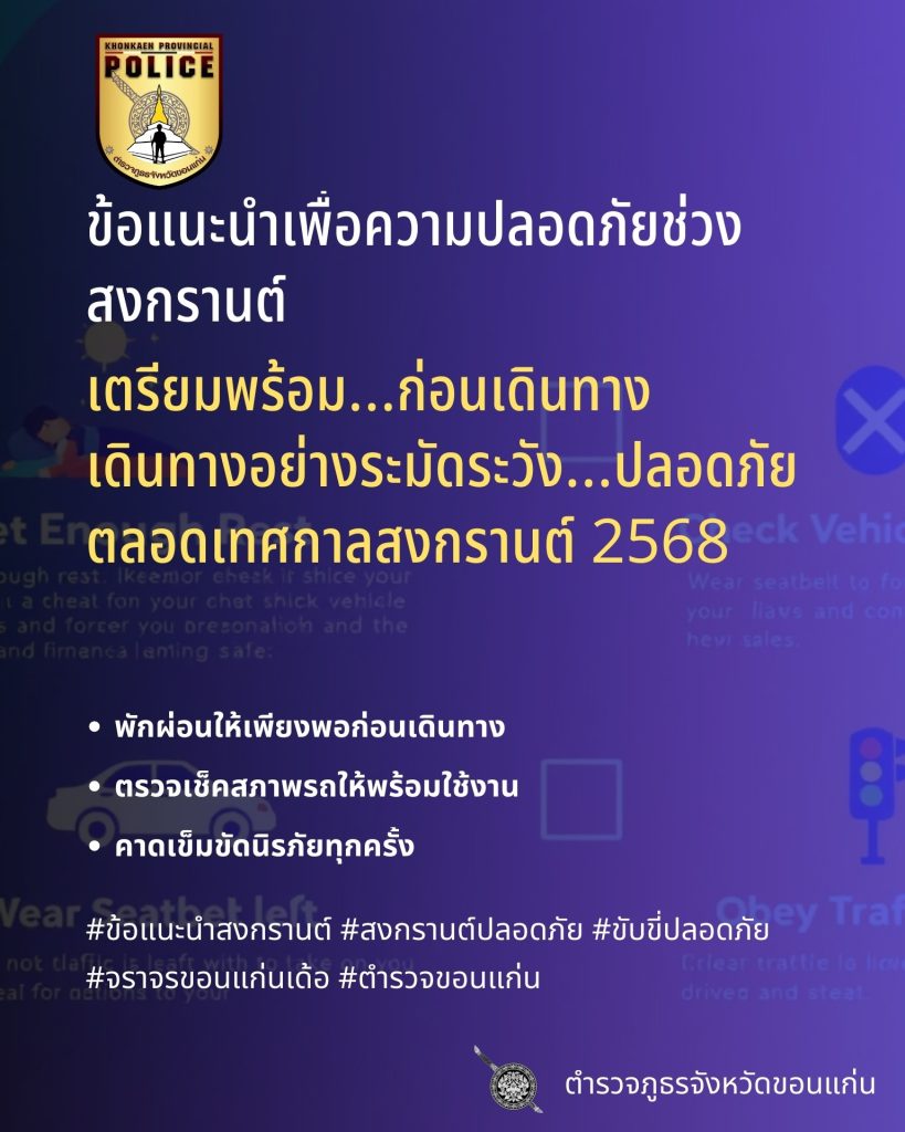 ตำรวจภูธรจังหวัดขอนแก่น เชิญชวนพี่น้องประชาชน ร่วมด้วยช่วยกันรณรงค์ “สงกรานต์ขอนแก่นปลอดภัย”