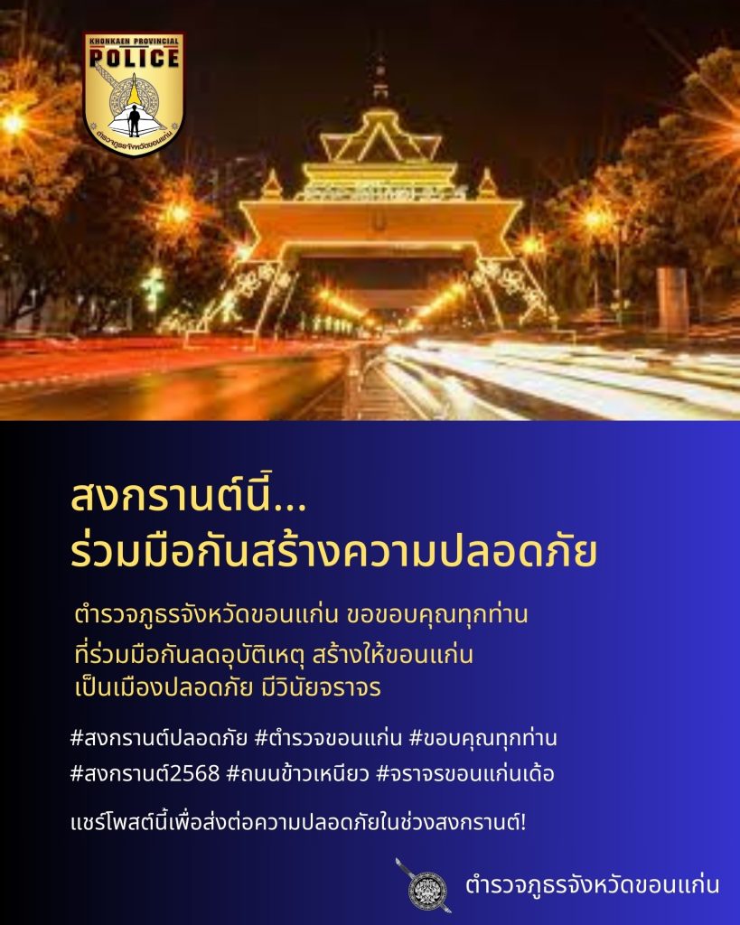 ตำรวจภูธรจังหวัดขอนแก่น เชิญชวนพี่น้องประชาชน ร่วมด้วยช่วยกันรณรงค์ “สงกรานต์ขอนแก่นปลอดภัย” ครับ