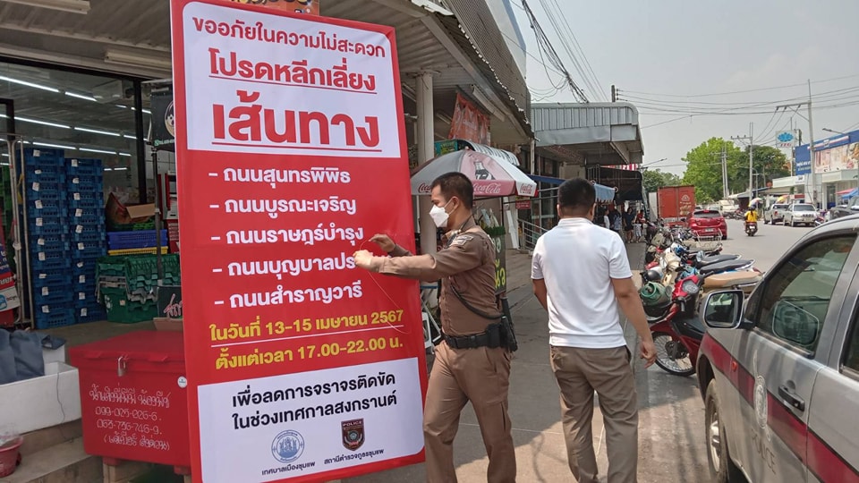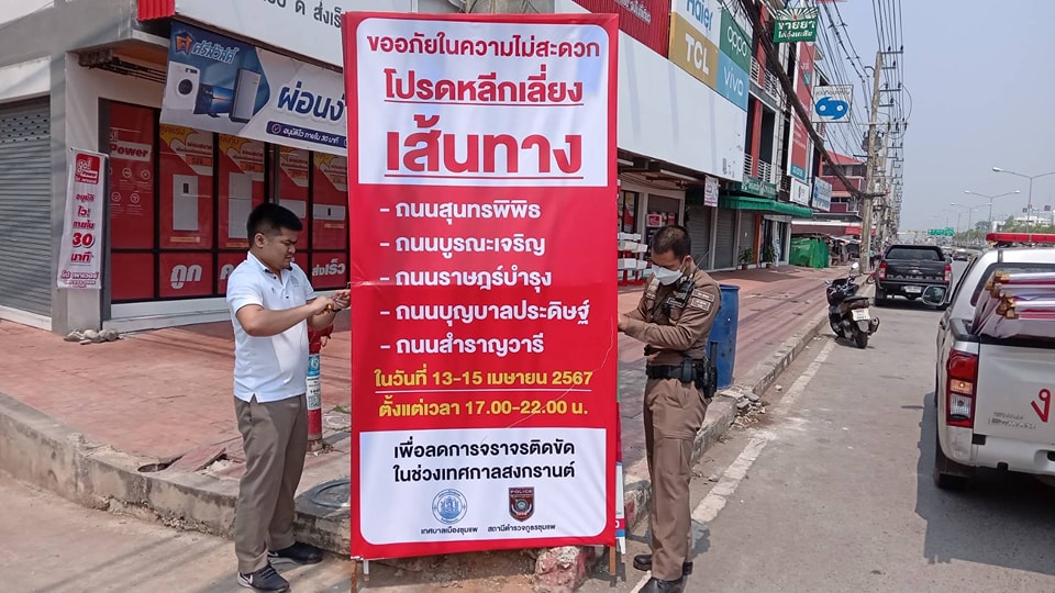 วันที่ 12 เมษายน 2567 เวลา 13.42 น. พ.ต.อ.รักชาติ เรืองเจริญ ผกก.สภ.ชุมแพ ได้มอบหมายให้ เจ้าหน้าที่ตำรวจจราจร นำป้ายขอความร่วมมือ แนะนำเส้นทาง ติดตั้งในพื้นที่โซนเล่นน้ำสงกรานต์ ถนนภายในเขตเทศบาลเมืองชุมแพ