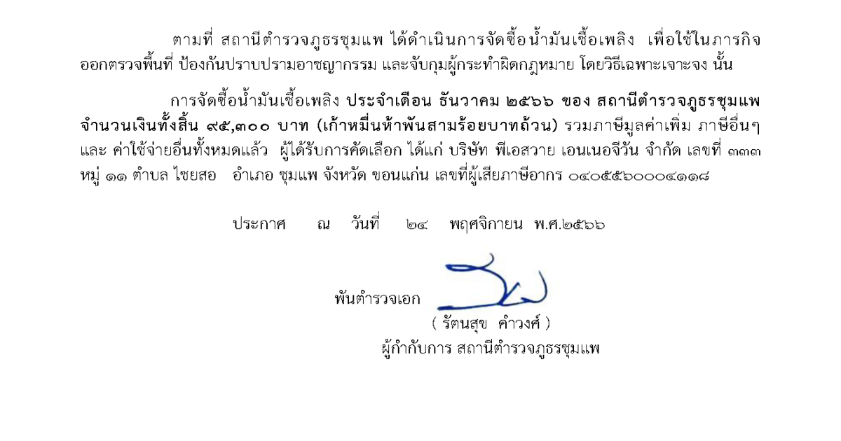 ประกาศจัดซื้อน้ำมันเชื้อเพลิง เดือน ธันวาคม 2566