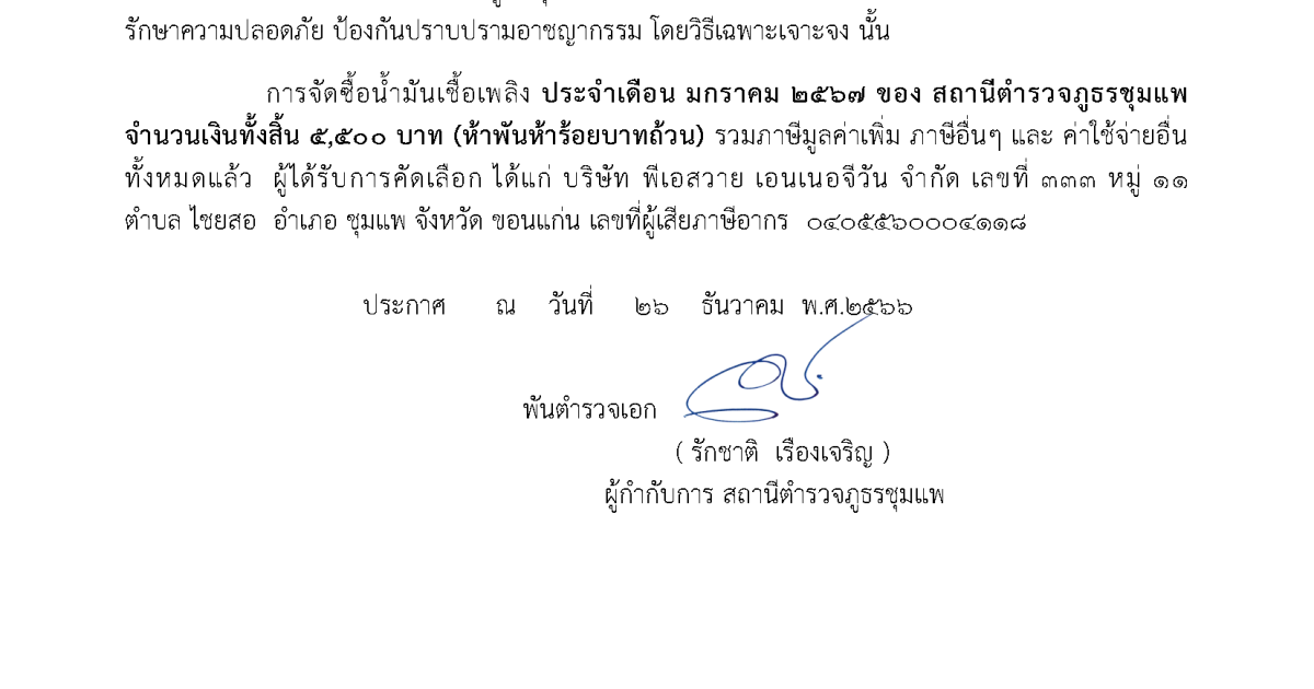ประกาศจัดซื้อน้ำมันเชื้อเพลิงรถยนต์ตู้โดยสารรถยนต์เอนกประสงค์ เดือน มกราคม 2567