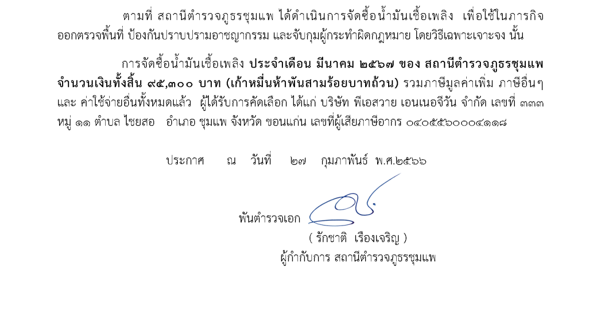 ประกาศจัดซื้อน้ำมันเชื้อเพลิง เดือน มีนาคม 2567