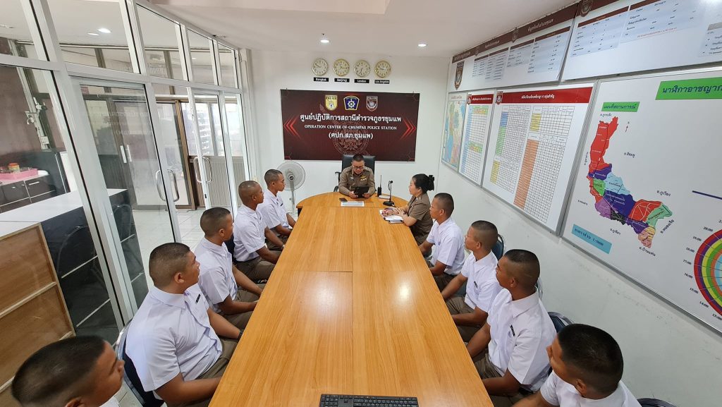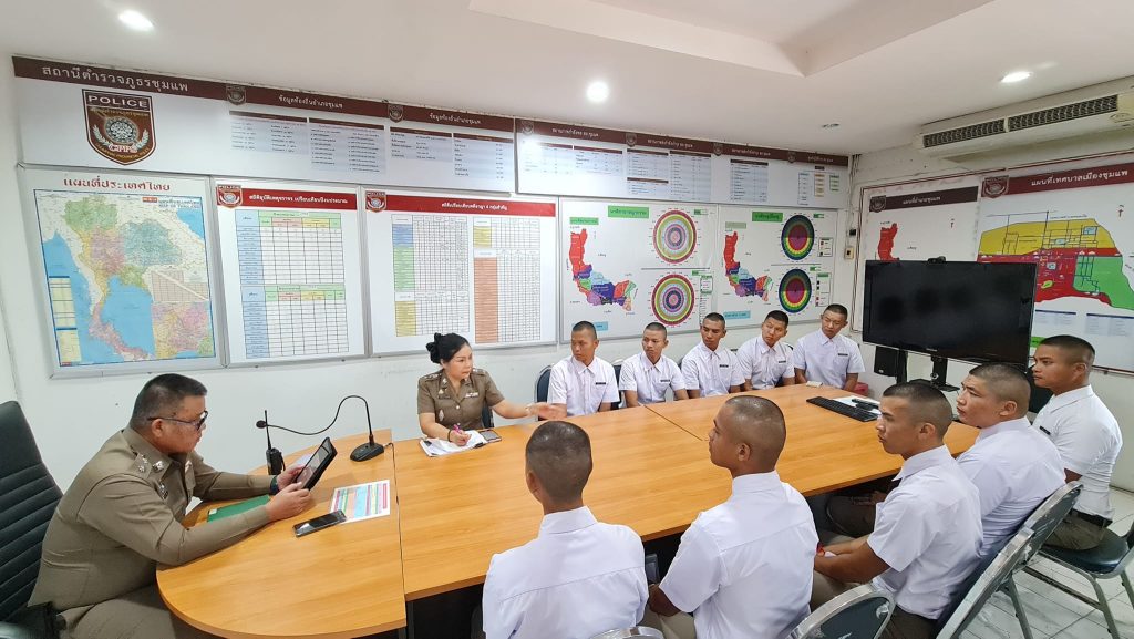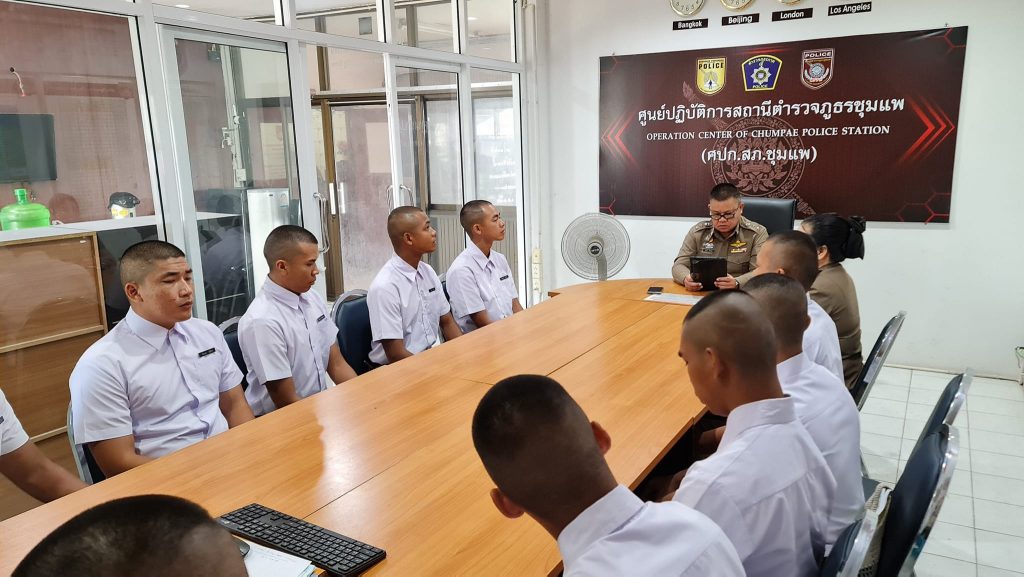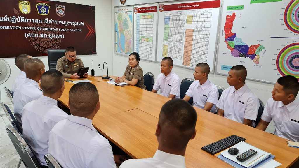 วันที่ 4 มิถุนายน 2567 เวลา 09.00 น. พ.ต.อ.รักชาติ เรืองเจริญ ผกก.สภ.ชุมแพ พร้อมด้วย พ.ต.ท.หญิง นงค์คราญ หาญเชิงชัย สว.อก.สภ.ชุมแพ ครูพี่เลี้ยง ประชุมชี้แจงและปฐมนิเทศนักเรียนนายสิบตำรวจฝึกปฏิบัติราชการ ประจำปีงบประมาณ พ.ศ.2567 (ครั้งที่ 1) จำนวน 10 นาย ณ ห้อง ศปก.สภ.ชุมแพ กำชับการฝึกปฏิบัติหน้าที่ให้อยู่ในระเบียบวินัยอย่างเคร่งครัด