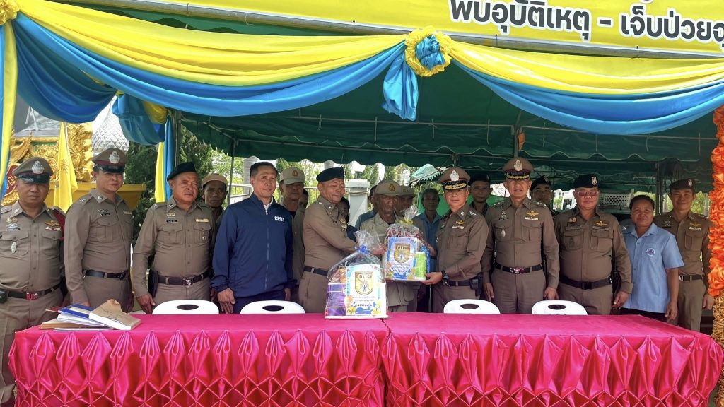 พร้อมนี้ได้มอบสิ่งของแก่เจ้าหน้าที่ผู้ปฏิบัติหน้าที่ประจำจุด เพื่อสร้างขวัญและกำลังใจในการปฏิบัติหน้าที่ ก่อนออกเดินทางตรวจจุดต่างๆต่อไป
