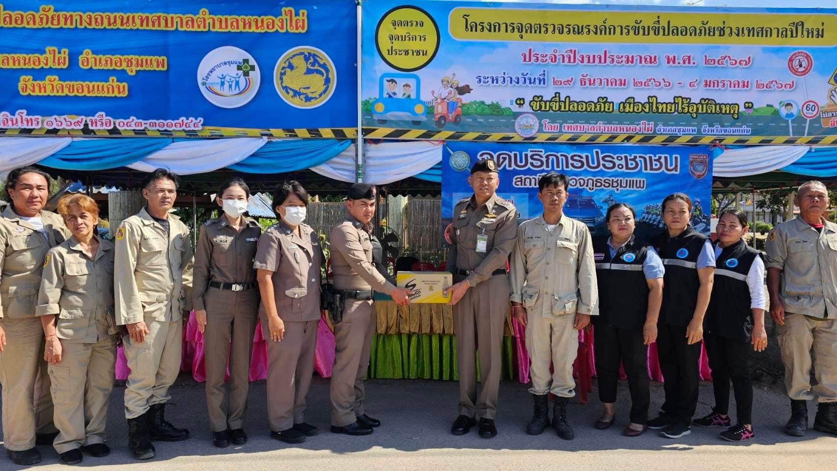 พร้อมนี้ ได้มอบเครื่องดื่มให้กับเจ้าหน้าที่ประจำจุดบริการ เพื่อเป็นสวัสดิการและขวัญกำลังใจในการปฏิบัติหน้าที่บริการประชาชนต่อไป