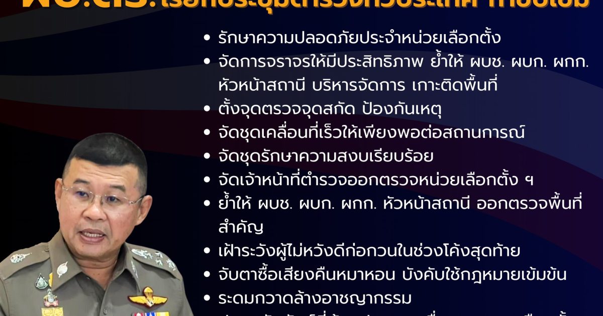 ศูนย์อำนวยการรักษาความปลอดภัยและความสงบเรียบร้อยการจัดการเลือกตั้ง สำนักงานตำรวจแห่งชาติ (ศลต.ตร.) พร้อมดูแลความสงบเรียบร้อย พล.ต.อ.ดำรงศักดิ์ กิตติประภัสร์ ผบ.ตร. และ พล.ต.อ.รอย อิงคไพโรจน์ รอง ผบ.ตร. / ผอ.ศลต.ตร.กำชับตำรวจทั่วประเทศวางตัวเป็นกลางอย่างเคร่งครัด