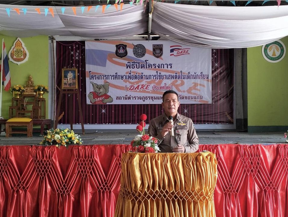 ร่วมพิธีปิดโครงการการศึกษาเพื่อต่อต้านการใช้ยาเสพติดในเด็กนักเรียน (D.A.R.E.ประเทศไทย) และได้มอบใบประกาศนียบัตรแก่นักเรียนโรงเรียนบ้านธาตุ ต.หนองเขียด อ.ชุมแพ จ.ขอนแก่น
