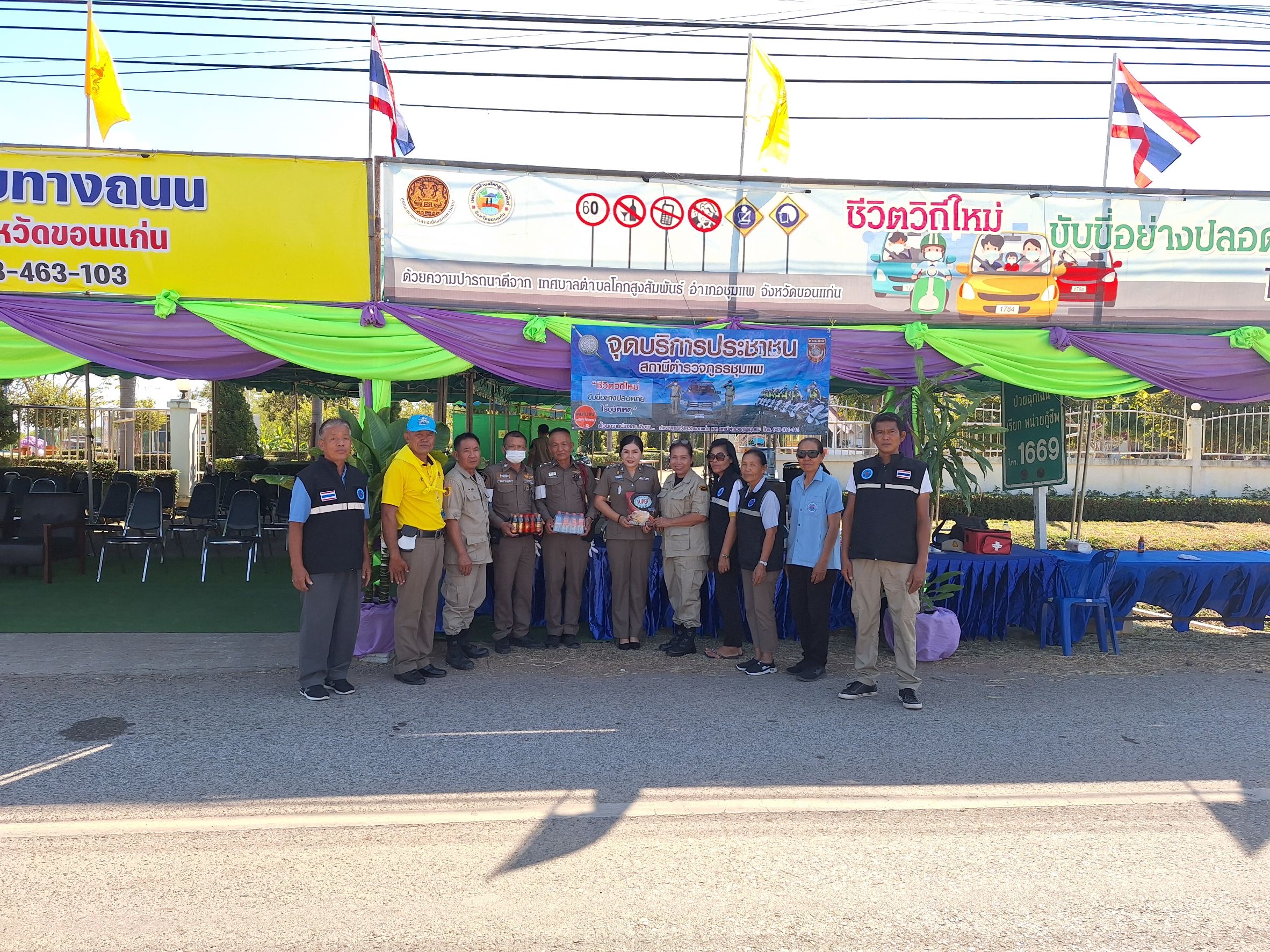 วันนี้(29 ธ.ค.2566) ตั้งแต่เวลา 09.00 น. พ.ต.อ.รักชาติ เรืองเจริญ ผกก.สภ.ชุมแพ มอบหมายให้ พ.ต.ท.นงคราญ หาญเชิงชัย สว.อก.สภ.ชุมแพ ตรวจเยี่ยมและมอบเครื่องดื่มชูกำลังให้แก่ จนท.ตำรวจ,อปพร., อสม.,จนท.ฝ่ายปกครองฯ ณ ศูนย์ปฏิบัติการความปลอดภัยทางถนน ช่วงเทศกาลปีใหม่ 2567