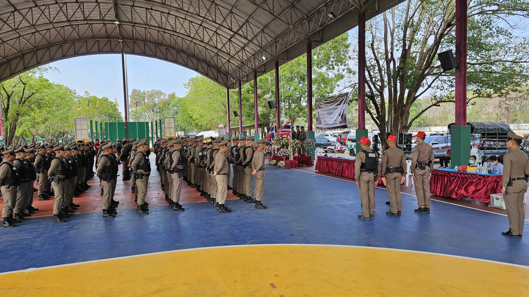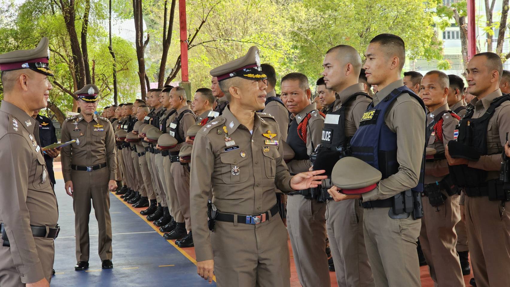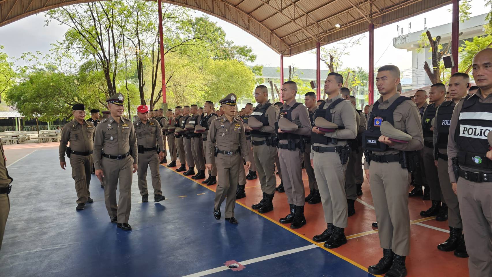 โดยมี ผกก.แต่ละ สภ. และผู้แทน ร่วมต้อนรับและร่วมตรวจประเมินการฝึก