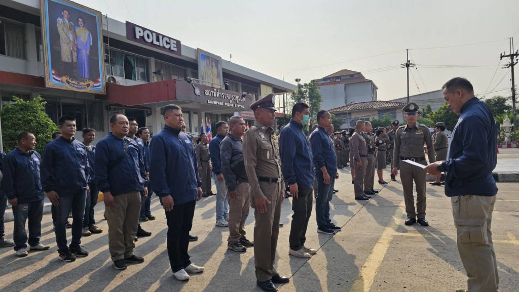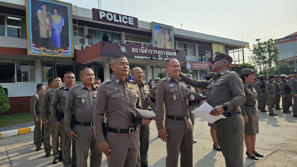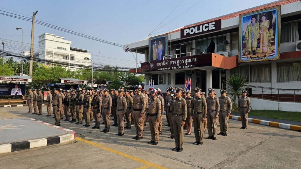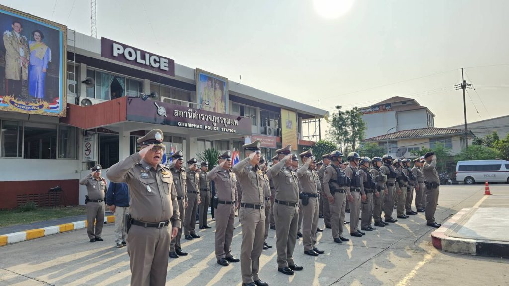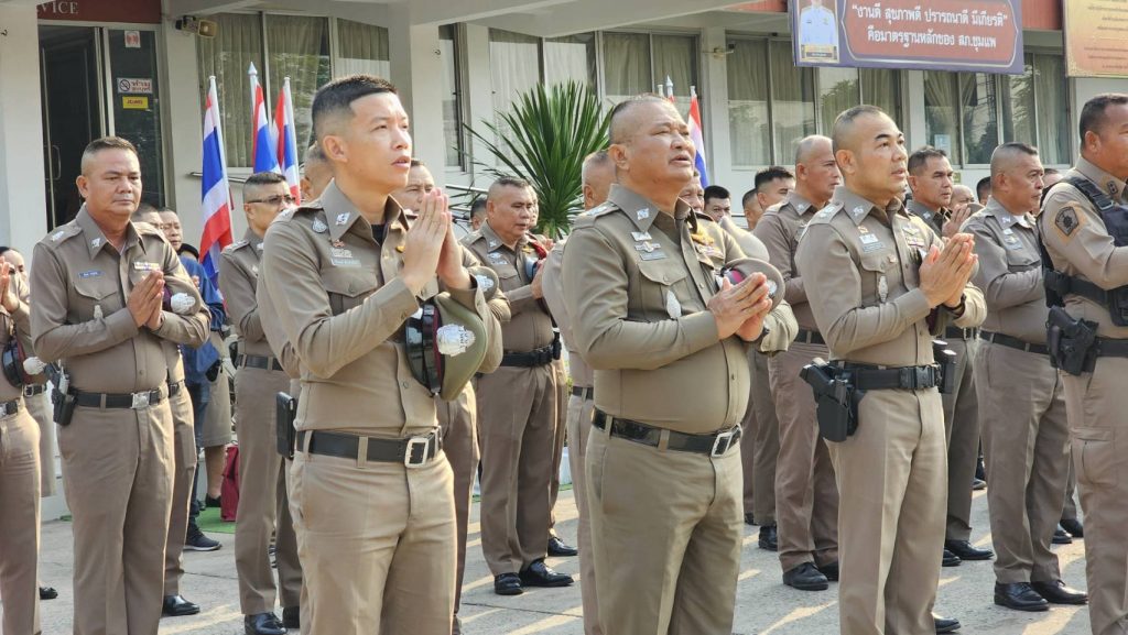 นำข้าราชการตำรวจ สภ.ชุมแพ ร่วมเข้าแถวเคารพธงชาติ สวดมนต์ไหว้พระ กล่าวคำปฏิญาณตน กล่าวบทปลงใจ อุดมคติตำรวจ พร้อมมอบนโยบายการปฏิบัติหน้าที่ แก่ข้าราชการตำรวจ สภ.ชุมแพ ดังนี้