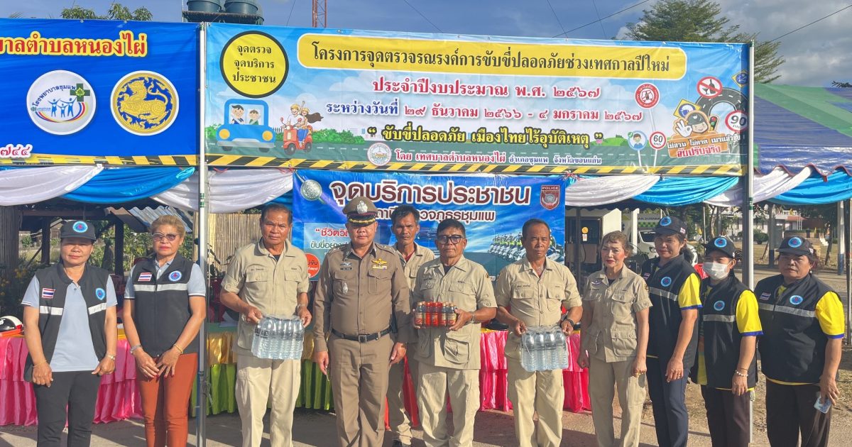 พร้อมนี้ ได้มอบน้ำ และเครื่องดื่มบำรุงกำลังให้กับเจ้าหน้าที่ประจำจุดบริการ เพื่อเป็นสวัสดิการและขวัญกำลังใจในการปฏิบัติหน้าที่บริการประชาชนต่อไป