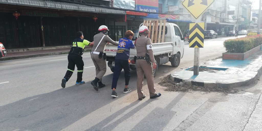 เจ้าหน้าที่ตำรวจจราจร สภ.ชุมแพ ออกตรวจพื้นที่รับผิดชอบในเขตเทศบาลเมืองชุมแพ พบรถยนต์จอดเสียในเส้นทางหลัก (ถนนมลิวรรณ) กีดขวางการจราจร ได้สอบถามผู้ขับขี่แจ้งว่าได้ขับรถยนต์มาส่งสินค้า เครื่องยนต์ดับบริเวณตลาดโต้รุ่ง หน้าห้างทองตั้งไทยสิน ผู้ขับขี่แจ้งว่าได้เติมน้ำมันเชื้อเพลิงผิดชนิด ได้เข็นรถเข้าข้างทางเพราะกลัวว่าอาจจะเกิดอุบัติเหตุซ้ำ และประสานกับอู่ซ่อมรถเพื่อดำเนินการแก้ไขต่อไป