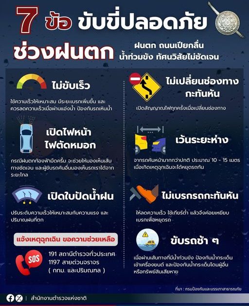 ช่วงฝนตก ถนนเปียกลื่น ทัศนวิสัยไม่ชัดเจน