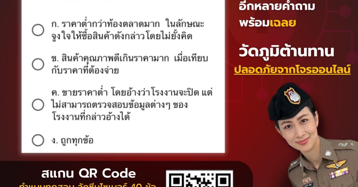 “สำนักงานตำรวจแห่งชาติ” เชิญชวนประชาชน ร่วมทำแบบทดสอบ วัคซีนไซเบอร์ เช็กระดับความเสี่ยง คุณรู้เท่าทันอุบายโจรออนไลน์หรือไม่ และจะได้รู้กลโกงออนไลน์ ที่คุณอาจยังไม่รู้