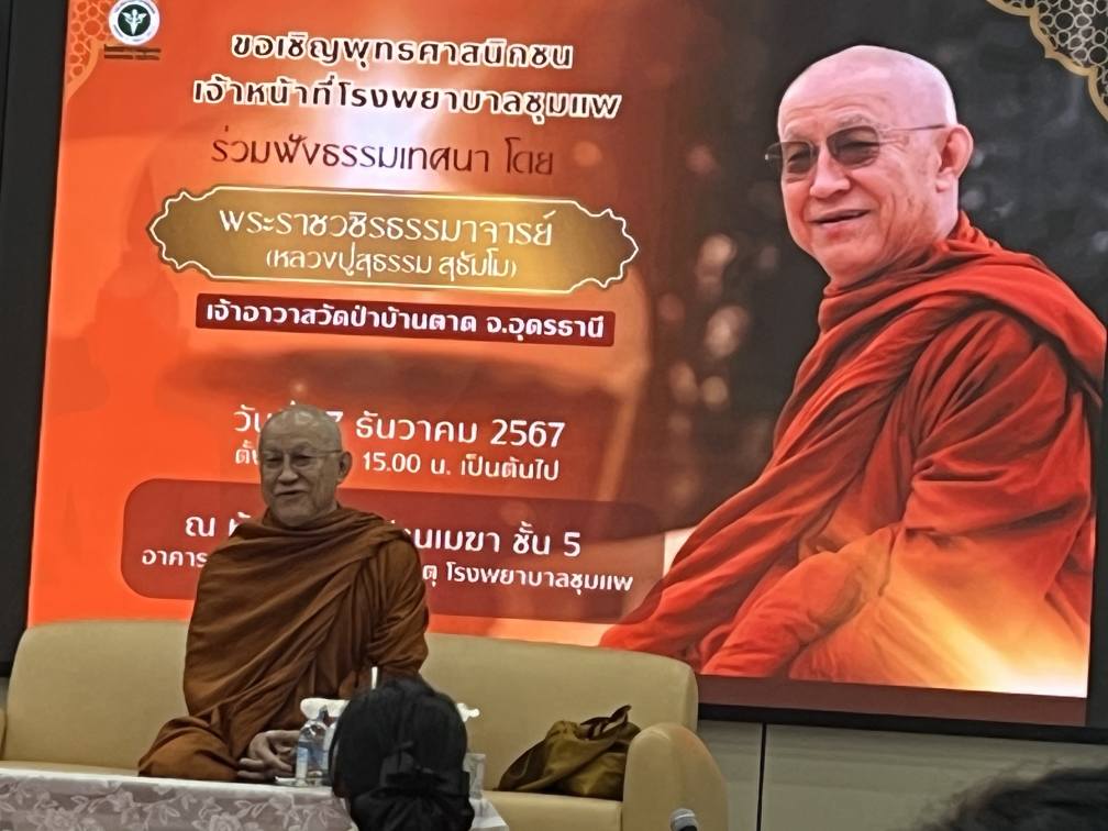 วันที่ 27 ธ.ค. 2567 เวลา 13.30 น. นางสาว อ้อยใจ คำบุญเรือง นายอำเภอชุมแพ , พ.ต.อ.รักชาติ เรืองเจริญ ผกก.สภ.ชุมแพ พร้อมด้วย สาธารณสุขจังหวัดขอนแก่น, ขนส่งจังหวัดขอนแก่น, ทีมสอบสวนอุบัติเหตุจังหวัดขอนแก่น และหน่วยงานที่เกี่ยวข้อง ร่วมกันประชุมวิเคราะห์ สรุปสถานการณ์การเกิดอุบัติเหตุรถทัวร์เสียหลักลงข้างทาง เป็นเหตุให้มีผู้เสียชีวิต 1 ราย และบาดเจ็บหลายราย ณ ห้องประชุมโรงพยาบาลชุมแพ จากนั้น ได้ร่วมฟังธรรมเทศนา จาก พระราชวชิรธรมาจารย์ (หลวงปู่สุธรรม สุธัมโม) เจ้าอาวาสวัดป่าบ้านตาด จ.อุดรธานี