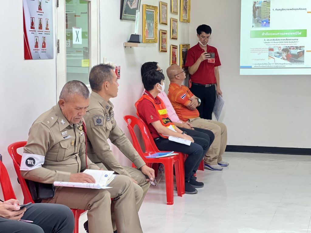 พร้อมกับหน่วยงานที่เกี่ยวข้อง ร่วมกันประชุมเตรียมความพร้อมขั้นตอนการซ้อมแผนเผชิญเหตุ การป้องกันและระงับอัคคีภัยในสถานประกอบการ ณ บมจ.ซีพี แอ็กซ์ตร้า สาขาชุมแพ (แม็คโครสาขาชุมแพ) อ.ชุมแพ จ.ขอนแก่น