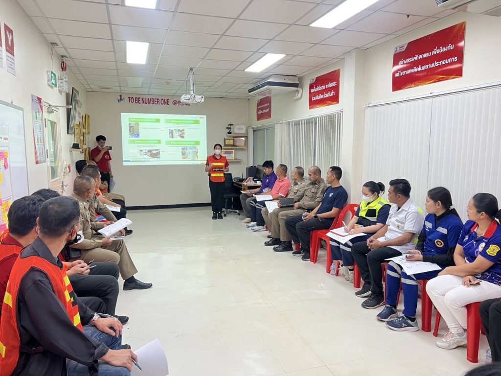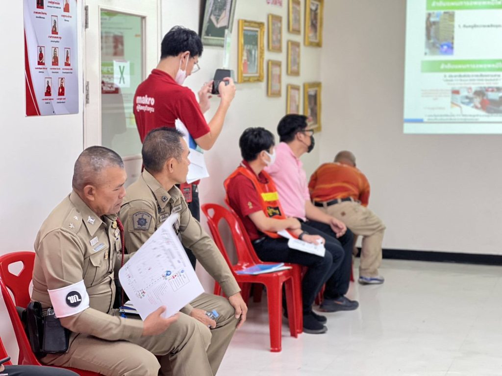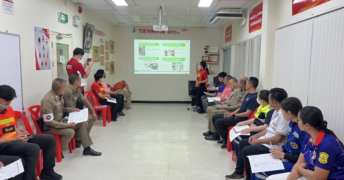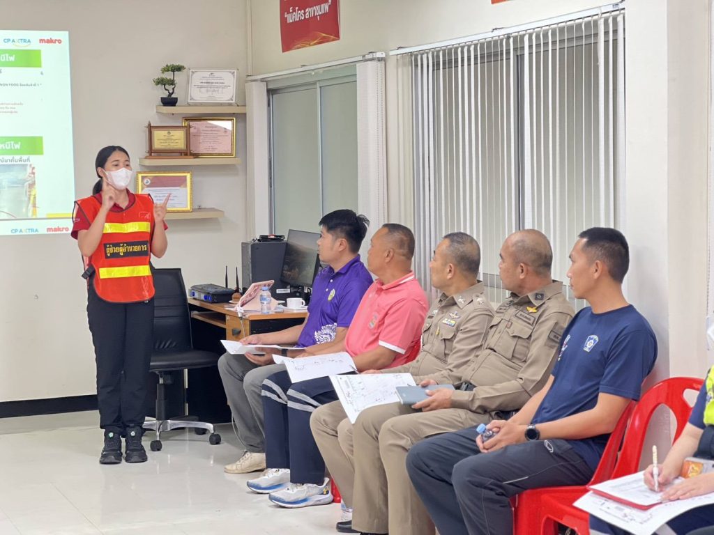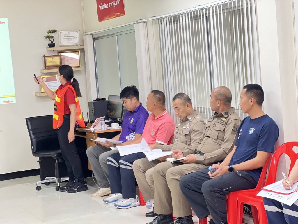 พร้อมกับหน่วยงานที่เกี่ยวข้อง ร่วมกันประชุมเตรียมความพร้อมขั้นตอนการซ้อมแผนเผชิญเหตุ การป้องกันและระงับอัคคีภัยในสถานประกอบการ ณ บมจ.ซีพี แอ็กซ์ตร้า สาขาชุมแพ (แม็คโครสาขาชุมแพ) อ.ชุมแพ จ.ขอนแก่น