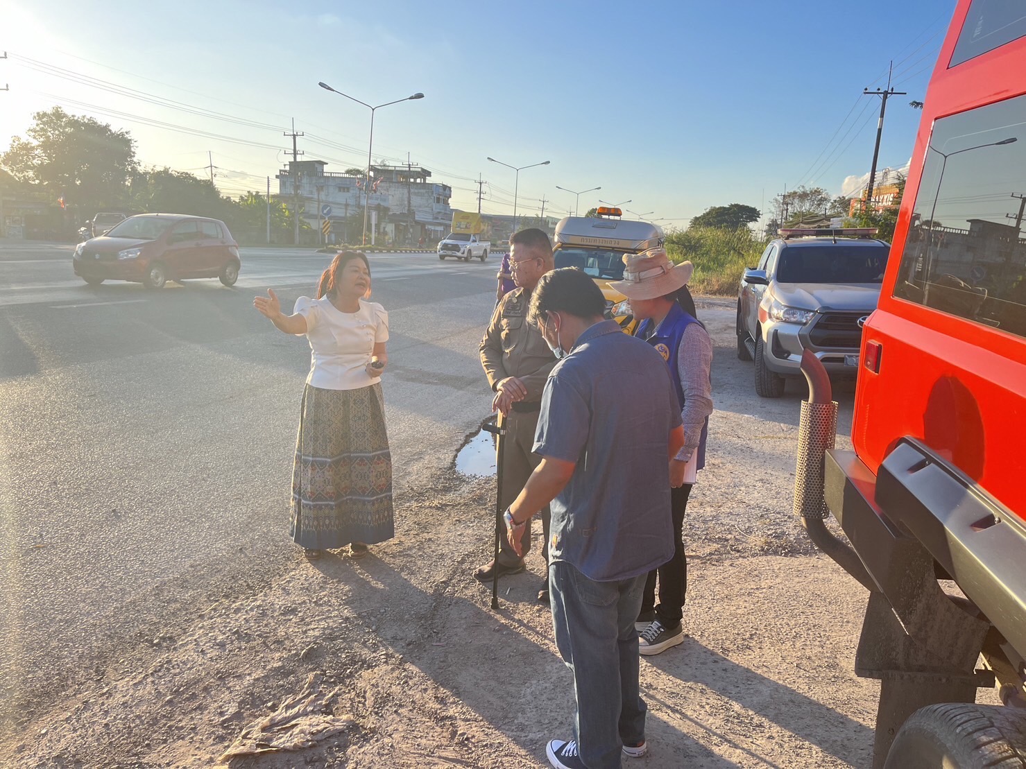 วันนี้ (19 ธ.ค. 66) เวลา 17.00 น. นางสาว อ้อยใจ คำบุญเรือง นายอำเภอชุมแพ, พ.ต.อ.รักชาติ เรืองเจริญ ผกก.สภ.ชุมแพ พร้อมด้วย งานป้องกันและบรรเทาสาธารณภัยอำเภอชุมแพ, แขวงทางหลวงอำเภอชุมแพ, สาธารณสุขอำเภอชุมแพ ร่วมกันสำรวจบริเวณจุดเสี่ยงที่เกิดอุบัติเหตุบ่อยครั้งในช่วงเทศกาล ช่วงจุดกลับรถ บ้านหนองตาไก้-หน้าเอี่ยมเส็ง-จุดกลับรถหน้าศูนย์วิจัยข้าวชุมแพ เพื่อเตรียมความพร้อมในการป้องกันและลดอุบัติเหตุในช่วงเทศกาลปีใหม่ 2567
