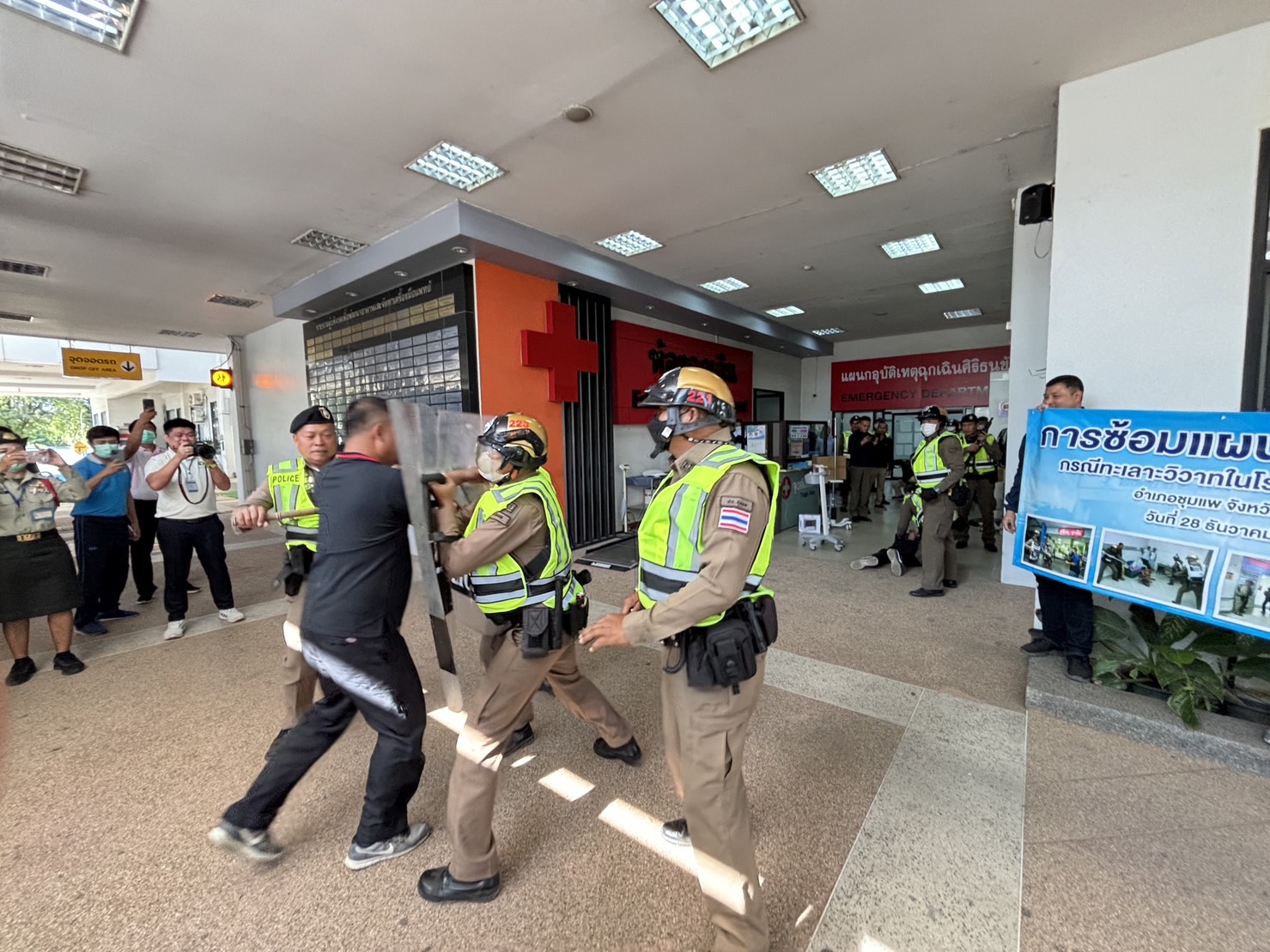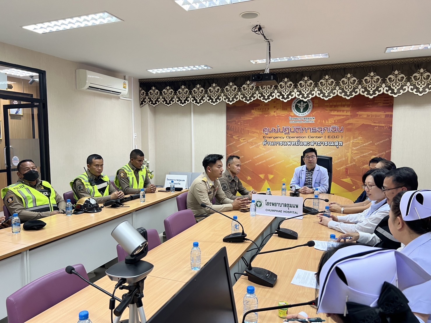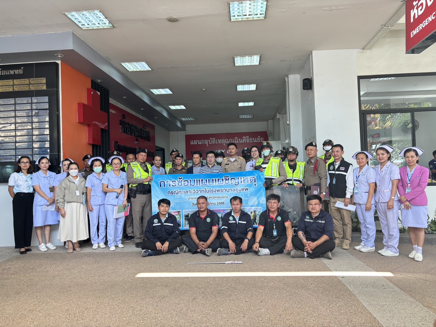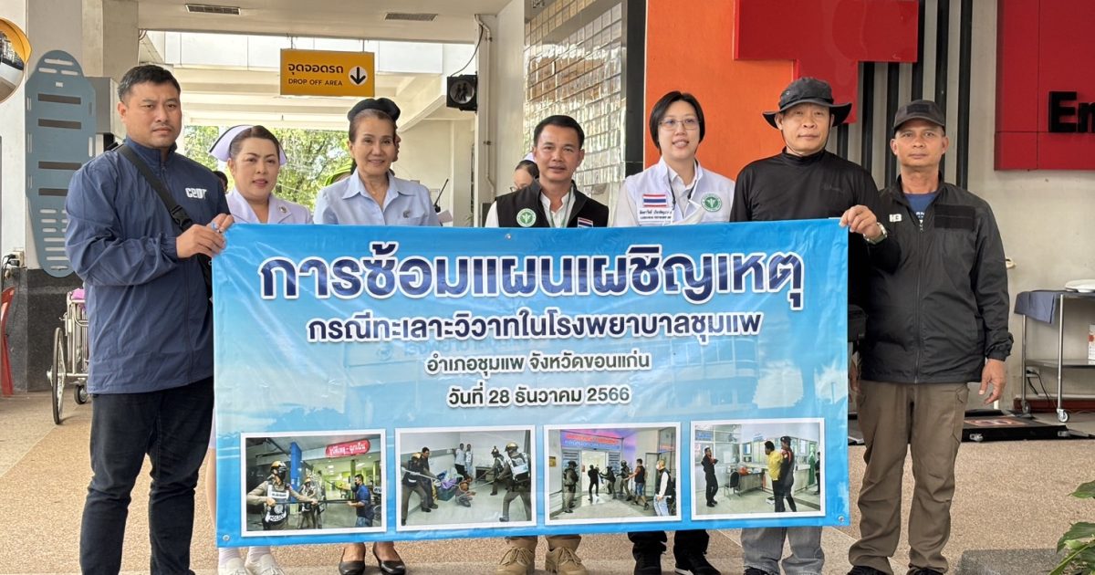 พ.ต.ท.บุญเหลือ คำศรี สวป.สภ.ชุมแพ พร้อมเจ้าหน้าที่ตำรวจ สภ.ชุมแพ ร่วมกับอำเภอชุมแพและโรงพยาบาลชุมแพ ซ้อมแผนเผชิญเหตุกรณีทะเลาะวิวาทในโรงพยาบาล เพื่อเตรียมความพร้อมให้กับเจ้าหน้าที่และสร้างแนวทางการจัดการเมื่อเกิดเหตุ