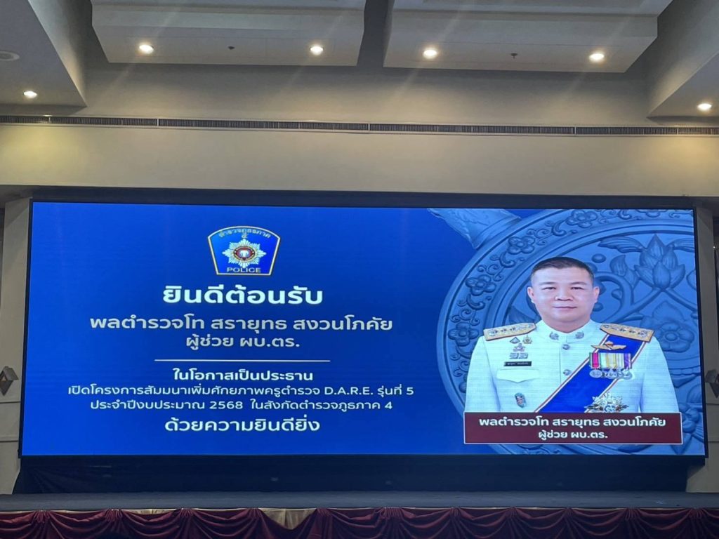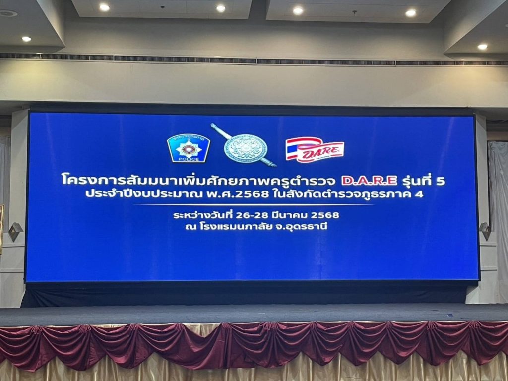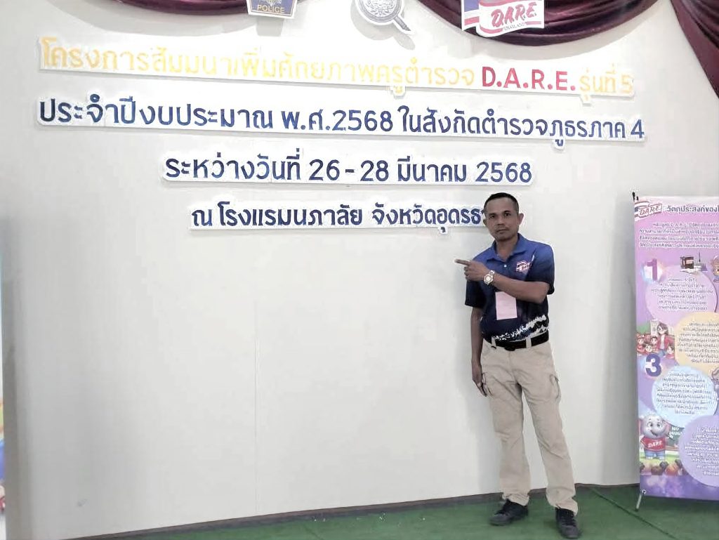 ร่วมกิจกรรมตามโครงการสัมมนาเพิ่มศักยภาพครูตำรวจแดร์ D.A.R.E. รุ่นที่ 5 ประจำปีงบประมาณ พ.ศ.2568 ในสังกัดตำรวจภูธรภาค 4 ณ ห้องฟ้าหลวง 2 – 3 โรงแรมนภาลัย จ.อุดรธานี