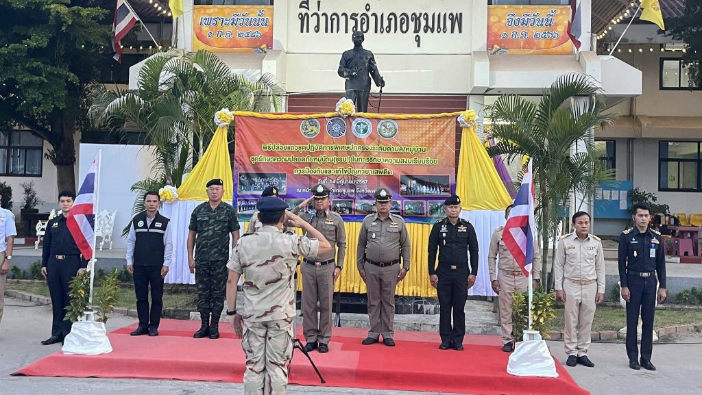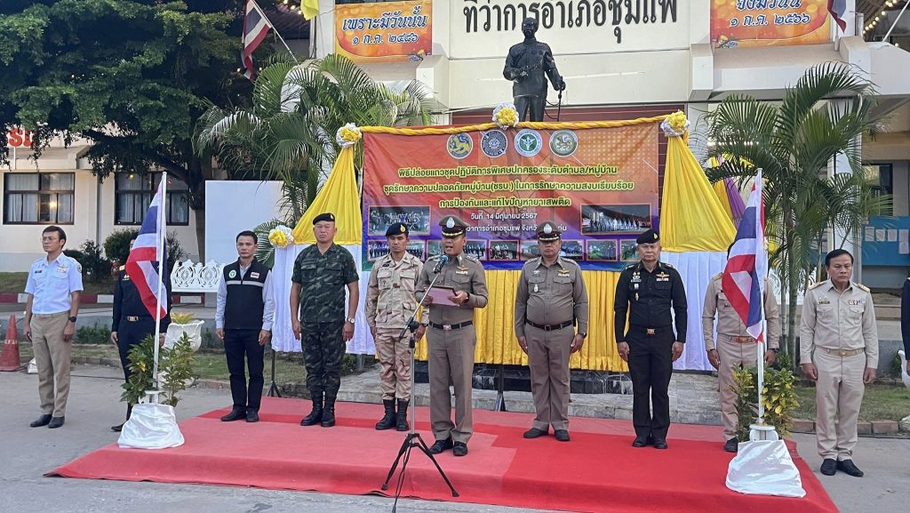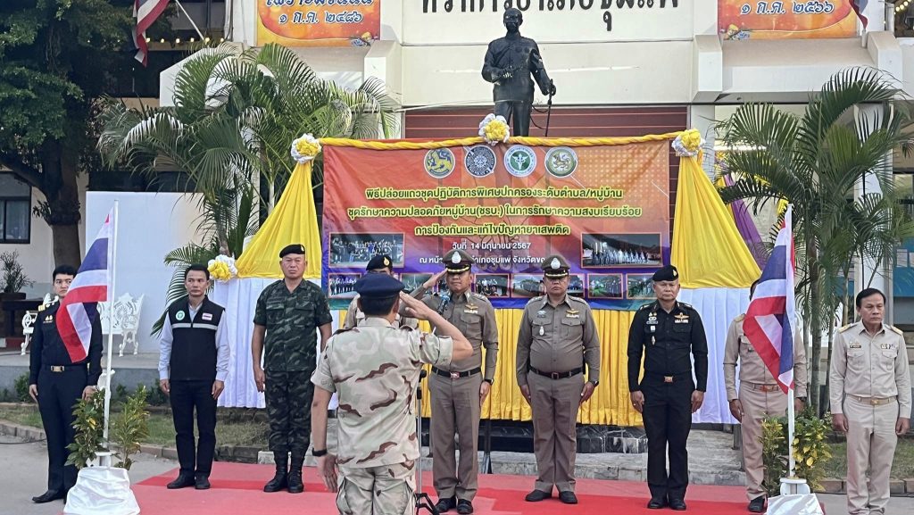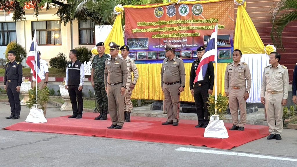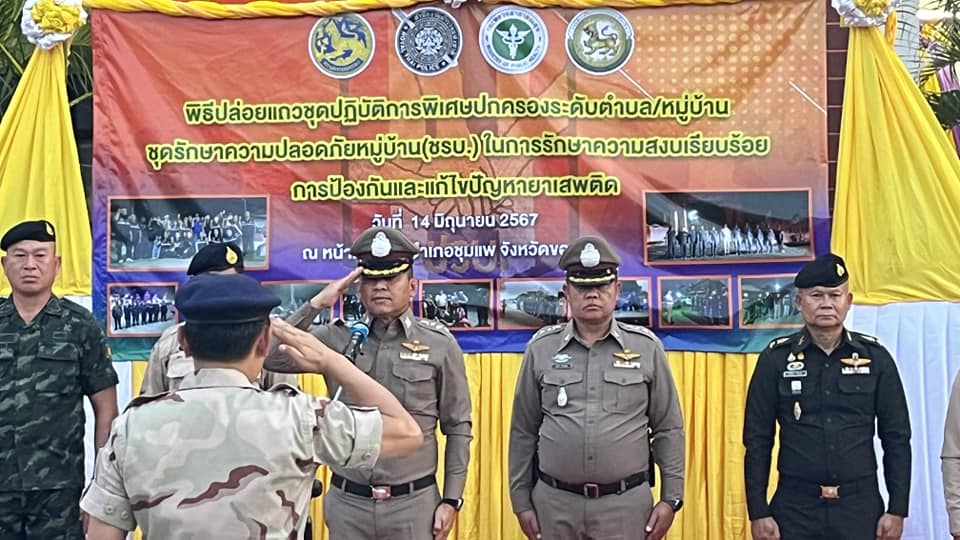 ร่วมบูรณาการกำลังปล่อยแถวชุดปฏิบัติการพิเศษฝ่ายปกครองระดับตำบล/หมู่บ้าน ชุดรักษาความปลอดภัยหมู่บ้าน (ชรบ.) เพื่อเป็นการปลุกกระแสการมีส่วนร่วมและสร้างการรับรู้แก่ประชาชนในการดำเนินการป้องกันและแก้ไขปัญหายาเสพติดในพื้นที่หมู่บ้าน/ตำบล ตามแผนปฏิบัติการเร่งรัดการดำเนินงานป้องกัน ปราบปราม และแก้ไขปัญหายาเสพติด ระยะเร่งด่วน 3 เดือน (1 มิ.ย. – 31 ส.ค. 67)