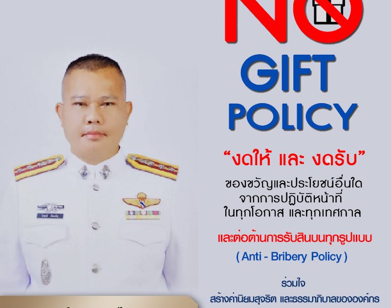 ร่วมประกาศเจตนารมณ์ที่จะไม่รับของขวัญและของกำนัลทุกชนิดจากการปฏิบัติหน้าที่ (No Gift Policy)