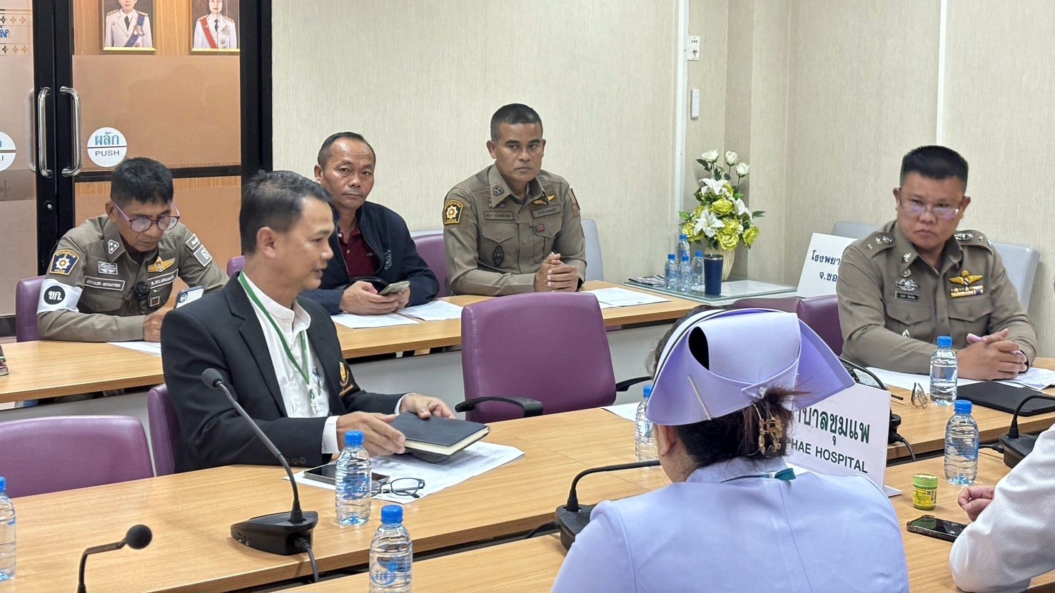 วันนี้ (28 ธ.ค. 2566) เวลา 11.30 น. พ.ต.อ.รักชาติ เรืองเจริญ ผกก.สภ.ชุมแพ พร้อมเจ้าหน้าที่ที่เกี่ยวข้อง ร่วมประชุมซักซ้อมแผนเผชิญเหตุกรณีทะเลาะวิวาทในโรงพยาบาล ณ ห้องประชุมอุทัยเอ็นดู โรงพยาบาลชุมแพ เพื่อเตรียมความพร้อมให้กับเจ้าหน้าที่และสร้างแนวทางการจัดการเมื่อเกิดเหตุ