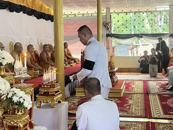 ร่วมพิธีบำเพ็ญกุศลในวาระครบ 50 วัน (ปัญญาสมวาร) แห่งการสวรรคต สมเด็จพระนางเจ้าสิริกิติ์ พระบรมราชินีนาถ พระบรมราชชนนีพันปีหลวง ณ วัดราษี บ้านขามป้อม ตำบลขัวเรียง อำเภอชุมแพ จังหวัดขอนแก่น