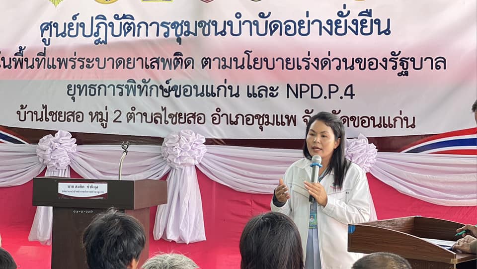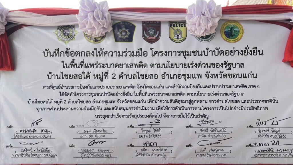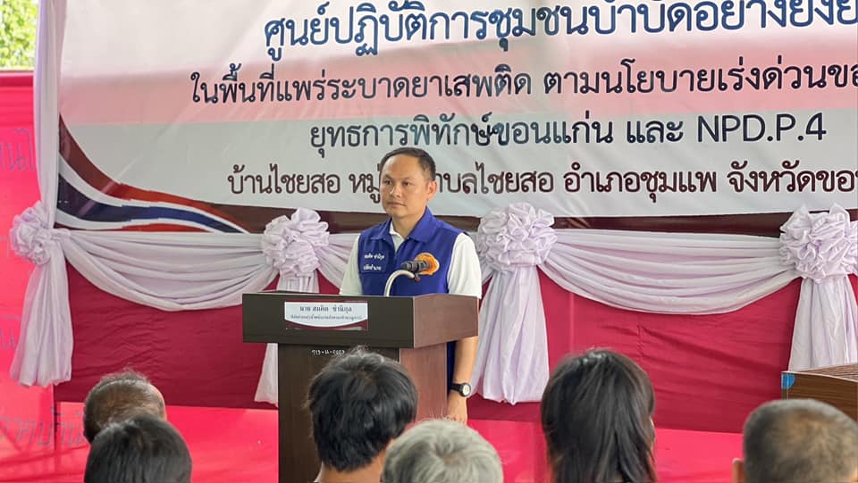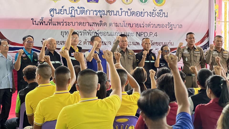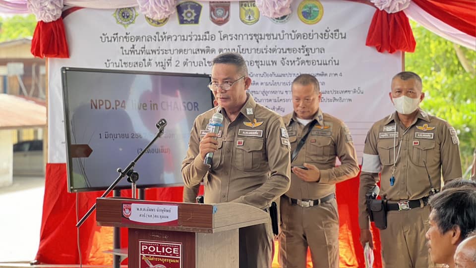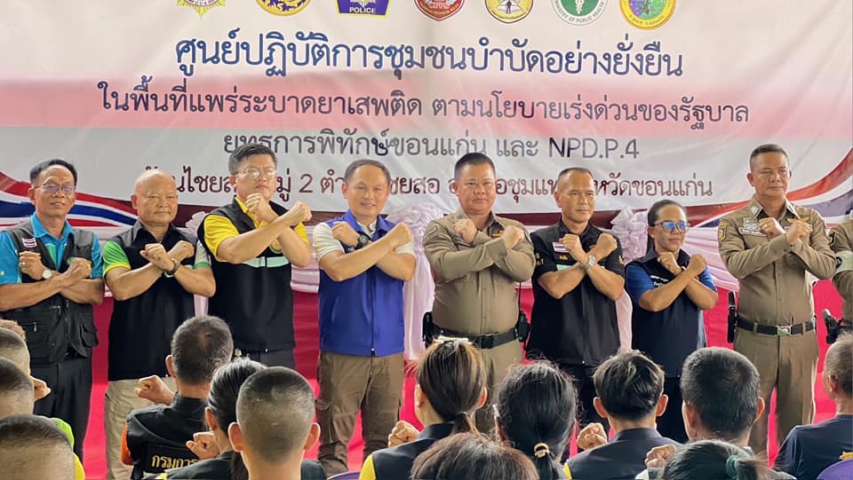 ร่วมพิธีเปิดและร่วมลงนามบันทึกข้อตกลง (MOU) โครงการชุมชนบำบัดอย่างยั่งยืน แผนยุทธการพิทักษ์ขอนแก่น และปฏิบัติการไล่ล่า(เด็ดปีก) นักค้าอีสานเหนือ 252 “No place for drug” (NPD.P.4) ระยะเร่งด่วน 3 เดือน ในพื้นที่แพร่ระบาดยาเสพติด ตามนโนบายเร่งด่วนของรัฐบาล พร้อมทั้งทำการ X-Ray กลุ่มเป้าหมาย ณ วัดโนนสะอาด บ.ไชยสอใต้ ม.2 ต.ไชยสอ อ.ชุมแพ จ.ขอนแก่น