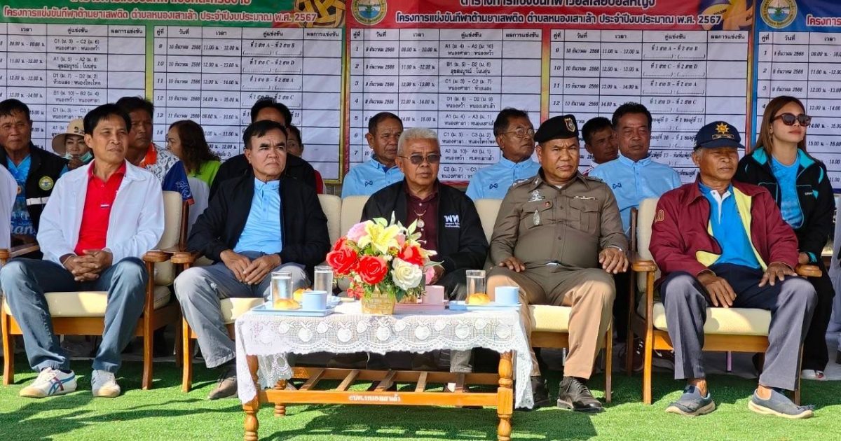 วันนี้ (9 ธ.ค.2566) เวลา 10.00 น. พ.ต.อ.รักชาติ เรืองเจริญ ผกก.สภ.ชุมแพ มอบหมายให้ พ.ต.ท.กฤติเดช สุพรรณ์ รอง ผกก.(สอบสวน) และ ร.ต.ต.อนันต์ พิมพา หัวหน้าตู้ยามนาเพียง ร่วมเป็นเกียรติ การแข่งขันกีฬาต้านยาเสพติดตำบลหนองเสาเล้า โดยมี ส.ส.สิงหภณ ดีนาง เป็นประธานพิธี และนายไพทูล ธรรมภูเขียว นายกเทศมนตรีตำบลหน้าเสาเล้า ผู้จัดงาน กำนันตำบลหนองเสาเล้า ผู้ใหญ่บ้าน สท พร้อมชาวบ้าน ต.หนองเสาเล้า ร่วมพิธีเปิดกีฬาในครั้งนี้
