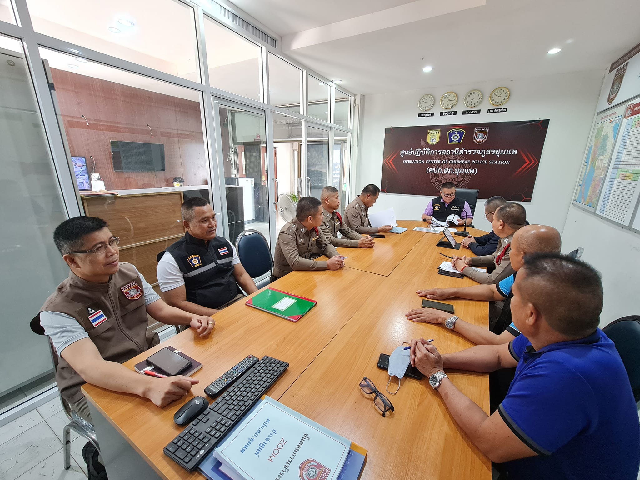 วันที่ 29 มีนาคม 2567 เวลา 09.30 น. พ.ต.อ.รักชาติ เรืองเจริญ ผกก.สภ.ชุมแพ , พ.ต.ท.กฤติเดช สุพรรณ์ รอง ผกก.(สอบสวน)สภ.ชุมแพ , พ.ต.ท.ชาญศักดิ์ สุนทะโรจน์ รอง ผกก.(สอบสวน)สภ.ชุมแพ พร้อมพนักงานสอบสวน สภ.ชุมแพ ร่วมเฝ้าฟังการประชุมด้วยระบบทางไกลผ่านสื่ออิเล็กทรอนิกส์ (ZOOM Cloud Meeting) ณ ห้อง ศปก.สภ.ชุมแพ เรื่อง มาตรการป้องกันและปราบปรามยาเสพติดตามนโยบายของรัฐบาล และ ตร. โดยให้ดำเนินการระดมกวาดล้าง ปิดล้อมตรวจค้น สืบสวนขยายผลจับกุมผู้ค้า และใช้มาตรการยึด/อายัดทรัพย์ที่เกี่ยวเนื่องกับยาเสพติด