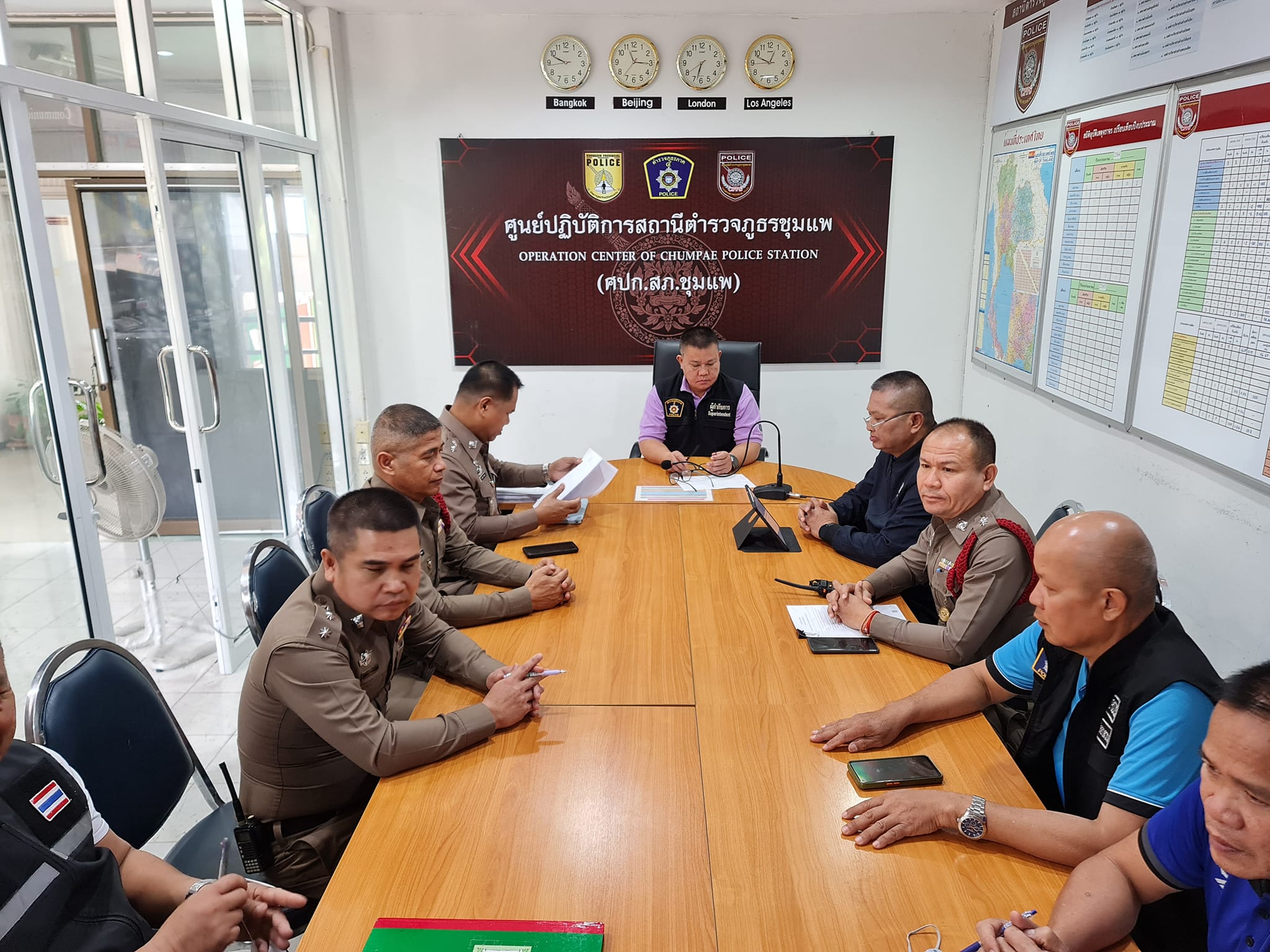 วันที่ 29 มีนาคม 2567 เวลา 09.30 น. พ.ต.อ.รักชาติ เรืองเจริญ ผกก.สภ.ชุมแพ , พ.ต.ท.กฤติเดช สุพรรณ์ รอง ผกก.(สอบสวน)สภ.ชุมแพ , พ.ต.ท.ชาญศักดิ์ สุนทะโรจน์ รอง ผกก.(สอบสวน)สภ.ชุมแพ พร้อมพนักงานสอบสวน สภ.ชุมแพ ร่วมเฝ้าฟังการประชุมด้วยระบบทางไกลผ่านสื่ออิเล็กทรอนิกส์ (ZOOM Cloud Meeting) ณ ห้อง ศปก.สภ.ชุมแพ เรื่อง มาตรการป้องกันและปราบปรามยาเสพติดตามนโยบายของรัฐบาล และ ตร. โดยให้ดำเนินการระดมกวาดล้าง ปิดล้อมตรวจค้น สืบสวนขยายผลจับกุมผู้ค้า และใช้มาตรการยึด/อายัดทรัพย์ที่เกี่ยวเนื่องกับยาเสพติด