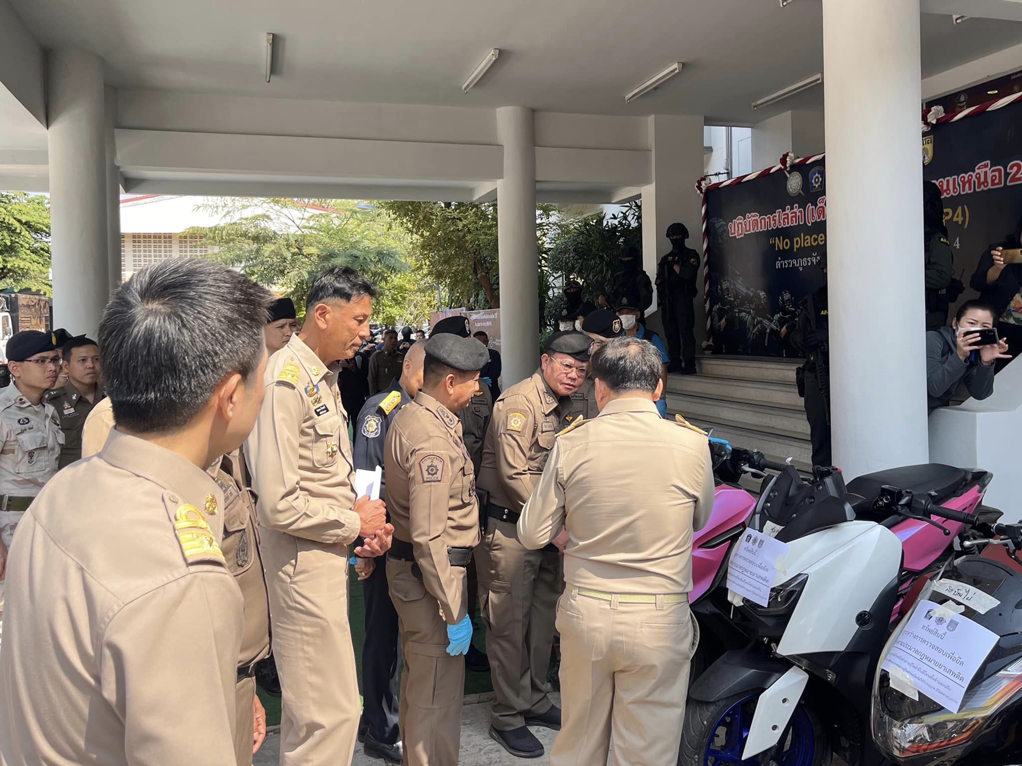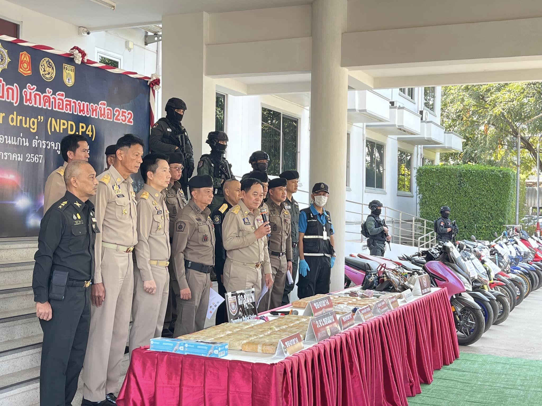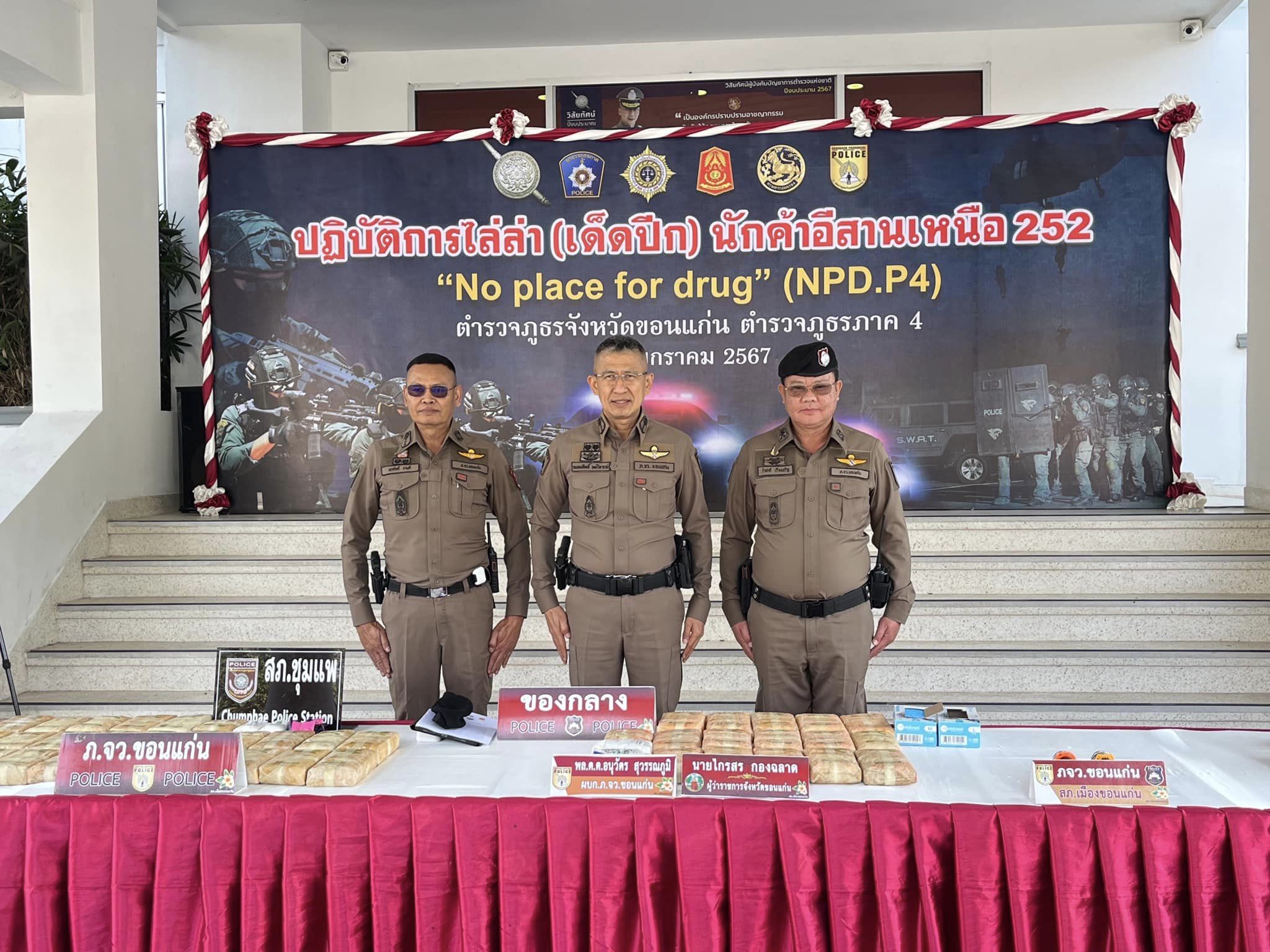 วันที่ 29 มกราคม 2567 เวลา 11.00 น. พล.ต.ต.อนุวัตร สุวรรณภูมิ ผบก.ภ.จว.ขอนแก่น, พ.ต.อ.ถนอมสิทธิ์ วงษ์วิจารณ์ รอง ผบก.ภ.จว.ขอนแก่น, พ.ต.อ.ปรีชา เก่งสาริกิจ รอง ผบก.ภ.จว.ขอนแก่น มอบหมายให้ พ.ต.อ.รักชาติ เรืองเจริญ ผกก.สภ.ชุมแพ, พ.ต.ท.ลักษณ์ ด้วงลำพันธ์ รอง ผกก.สส.สภ.ชุมแพ, พ.ต.ท.ภัทรพงษ์ ขอดทอง สว.(สอบสวน) สภ.ชุมแพ พร้อมชุดสืบสวน นำของกลางคดียาเสพติดร่วมในพิธีแถลงผลการปฏิบัติ ตามปฏิบัติการไล่ล่า(เด็ดปีก)นักค้าอีสานเหนือ 252 “No place for drug” (NPD.P4) เพื่อปราบปรามนักค้ายาเสพติดรายย่อยและเครือข่ายยาเสพติดในพื้นที่จังหวัดขอนแก่น โดยปฏิบัติการเชิงรุก ปิดล้อมตรวจค้น จับกุมบุคคลตามหมายจับในพื้นที่ที่มีการแพร่ระบาดยาเสพติด และดำเนินการยึด/อายัดทรัพย์สินนักค้ายาเสพติดทุกราย ซึ่งเป็นนโยบายเร่งด่วนของสำนักงานตำรวจแห่งชาติ และ ตำรวจภูธรภาค 4 โดยมี นายไกรสร กองฉลาด ผู้ว่าราชการจังหวัดขอนแก่น เป็นประธานในพิธี ณ ลานหน้า ภ.จว.ขอนแก่น