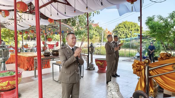 สักการะศาลหลักเมืองชุมแพ พระพุทธรูปประจำ สภ.ชุมแพ และสิ่งศักดิ์สิทธิ์ประจำ สภ.ชุมแพ เพื่อความเป็นสิริมงคลเนื่องในโอกาสเข้ารับตำแหน่งใหม่
