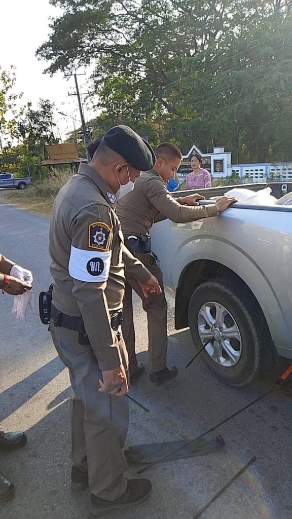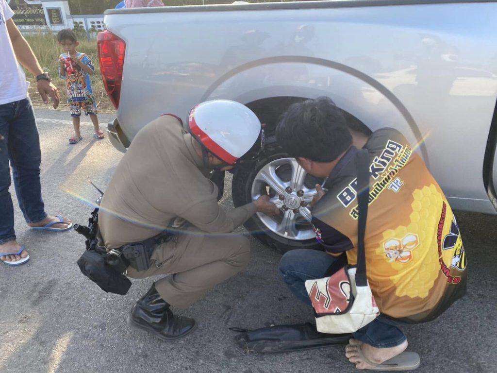 วันที่ 9 มกราคม 2568 เวลาประมาณ 16.00 น. โดยการอำนวยการของ พ.ต.อ.รักชาติ เรืองเจริญ ผกก.สภ.ชุมแพ , พ.ต.ท.ธรรมวิทย์ พลแก้ว รอง ผกก.ป.สภ.ชุมแพ , พ.ต.ท. บุญเหลือ คำศรี สวป.สภ.ชุมแพ มอบหมายให้ ร.ต.อ.อิทธิพัทธ์ บุตรธนู รอง สว.จร.สภ.ชุมแพ , ร.ต.อ.มังกร ใจกว้าง รอง สวป.สภ.ชุมแพ , ร.ต.ท.อดุลย์กิจ นามแดง รอง สว.(ป.)สภ.ชุมแพ ออกปฏิบัติหน้าที่บริเวณหน้าโรงเรียนชุมชนไผ่กุดหินท่าเดื่อ(ถนนชุมแพ-ภูเขียว) อ.ชุมแพ จ.ขอนแก่น พบรถยนต์กระบะยางระเบิด จึงได้นำทีมงานจราจรพร้อมนักเรียนนายสิบตำรวจฝึกปฏิบัติราชการ เข้าช่วยเหลือ ถอดยางไปเปลี่ยนที่ร้านซ่อมฯ และนำยางใหม่มาเปลี่ยนให้ สามารถเดินทางต่อไปได้