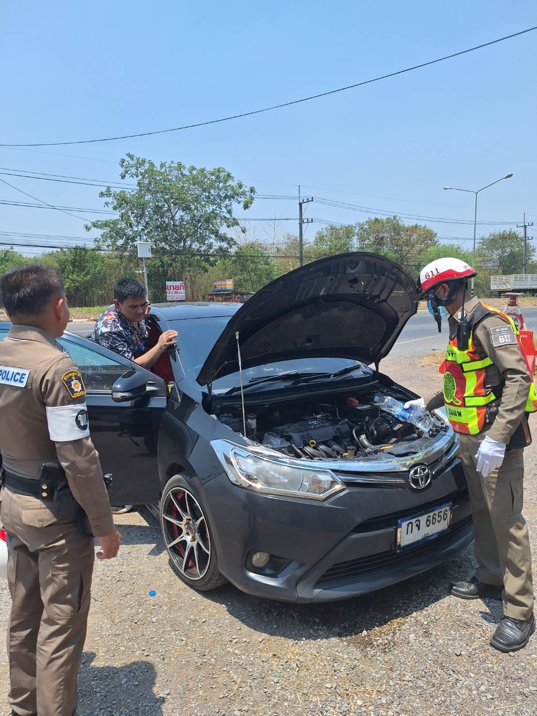 วันที่ 29 เมษายน 2567 เวลา 11.00 น. ร.ต.อ.ประเวก พรมรอด รอง สวป.สภ.ชุมแพ ร้อยเวรจราจร (ชุมแพ 60) พร้อมด้วยเจ้าหน้าที่ตำรวจจราจร สภ.ชุมแพ ชุดที่2, 3 ปฏิบัติหน้าอำนวยความสะดวกและกวดขันวินัยจราจร ณ บริเวณจุดตรวจเข้มแข็งหนองตุ้มนก ถนนมลิวรรณ อ.ชุมแพ จ.ขอนแก่น พบรถยนต์เก๋งสีดำจอดข้างทางบริเวณจุดตรวจฯได้สอบถามผู้ขับขี่แจ้งว่ารถยนต์เครื่องยนต์ร้อนจัดหม้อน้ำเดือด เกรงว่าขับต่อไปจะเกิดอันตราย ได้เข้าไปช่วยเหลือ พักรถแล้วเติมน้ำ(หม้อพัก)ทำการแก้ไขเครื่องยนต์ปกติ สามารถเดินทางต่อไปได้อย่างปลอดภัย