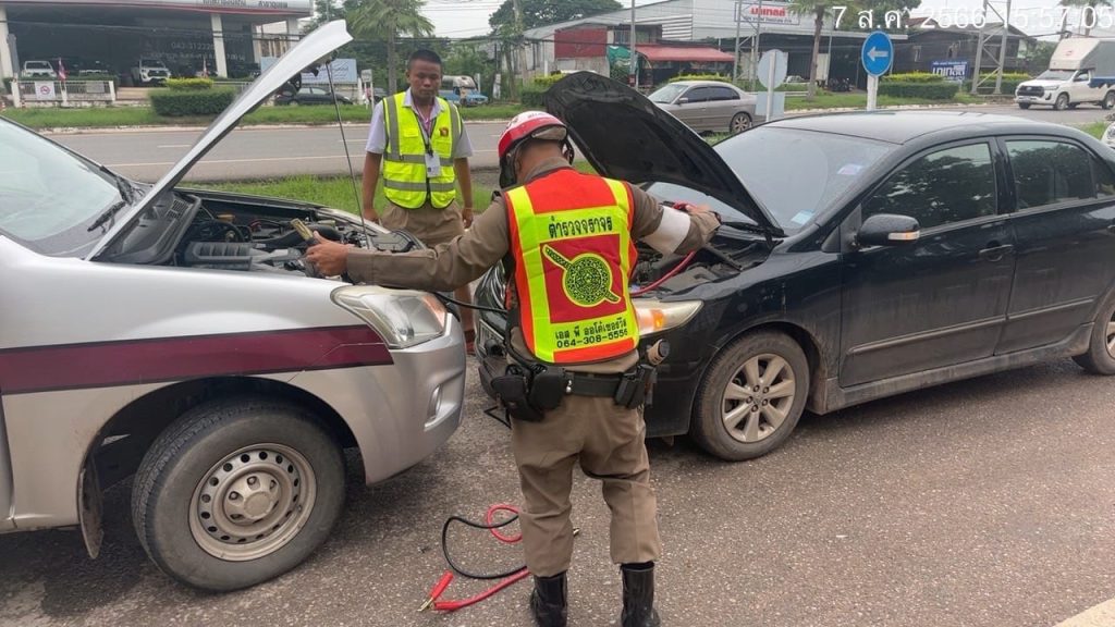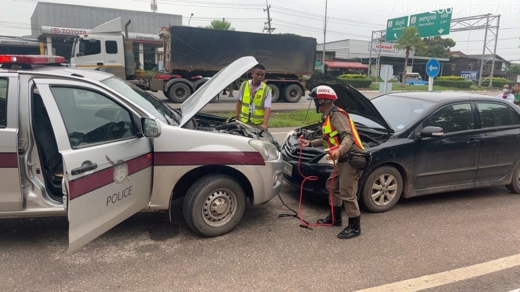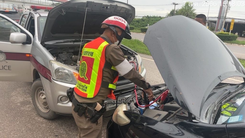ได้มอบหมายให้ ร.ต.อ.ปัณณทัต เชื้อป้อง รอง สวป สภ.ชุมแพ ปฏิบัติหน้าที่ร้อยเวร 60 และ ด.ต.ไพโรจน์ ตาปราบ ผบ.หมู่ (จร.)สภ.ชุมแพ ออกตรวจการจราจรในเขตพื้นที่รับผิดชอบ ได้รับแจ้งมีรถยนต์ของประชาชนจอดเสียบริเวณโสกน้ำใส จึงได้เข้าตรวจสอบและให้การช่วยเหลือพ่วงแบตเตอรี่ สามารถเดินทางต่อไปได้
