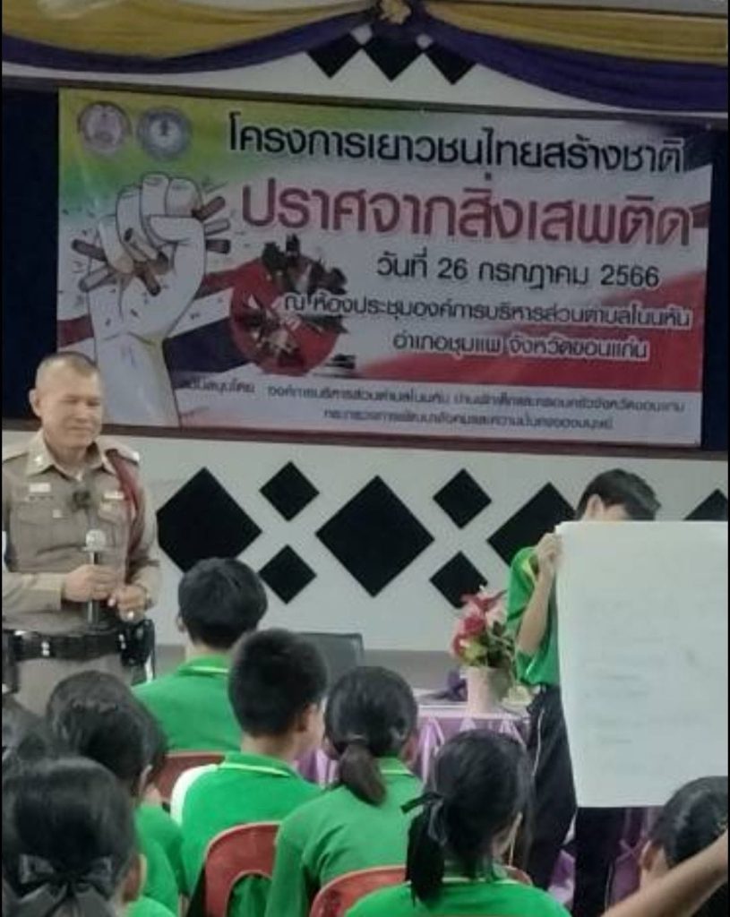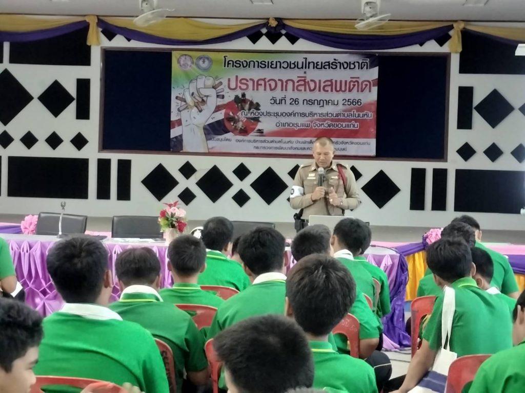 ร่วมเป็นวิทยากรบรรยาย อบรมโครงการเยาวชนไทยสร้างชาติ ปราศจากสิ่งเสพติดในกลุ่มเด็กและเยาวชน ประจำปีงบประมาณ 2566 และประชาสัมพันธ์ตามนโยบายของผู้ว่าราชการจังหวัดขอนแก่น “ขอนแก่นขับขี่ปลอดภัย 365 วัน” ให้ความรู้เกี่ยวกับกฎหมายจราจร, การสวมหมวกนิรภัย, การใช้สัญญาณมือและสัญญาณนกหวีด และประชาสัมพันธ์การป้องกันอาชญากรรมทางเทคโนโลยี ณ หอประชุมองค์การบริหารส่วนตำบลโนนหัน ให้แก่นักเรียนโรงเรียนหนองม่วงประชานุกูล อำเภอชุมแพ จังหวัดขอนแก่น จำนวน 50 คน