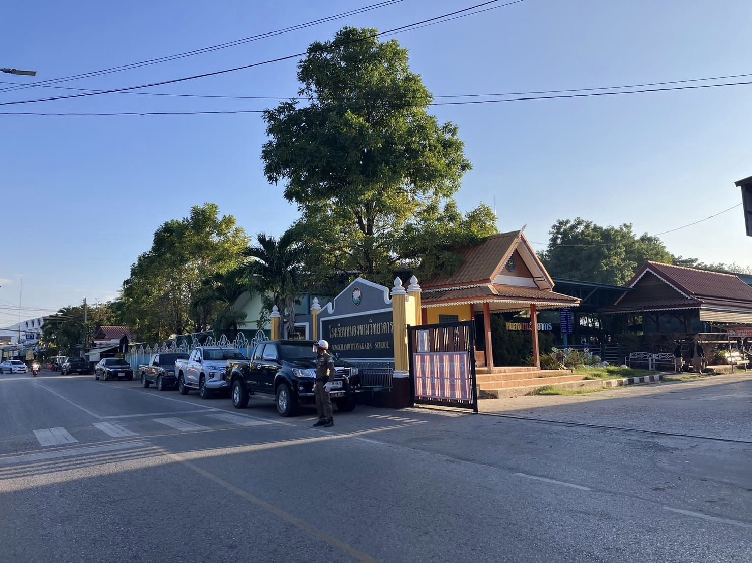 ร.ต.อ.ประเวก พรมรอด รอง สวป.สภ.ชุมแพ ช.60 พร้อมด้วยเจ้าหน้าที่ตำรวจจราจร สภ.ชุมแพ ปฏิบัติหน้าที่อำนวยความสะดวกการจราจรบริเวณหน้าโรงเรียนในเขตพื้นที่รับผิดชอบ