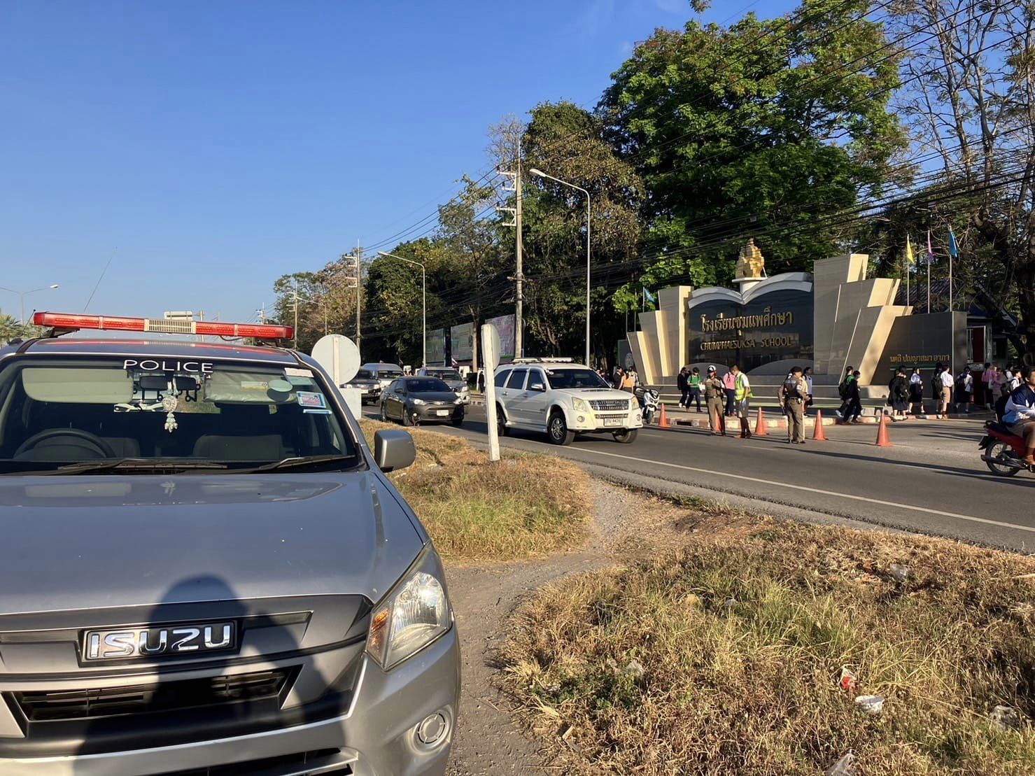 ร.ต.อ.ประเวก พรมรอด รอง สวป.สภ.ชุมแพ ช.60 พร้อมด้วยเจ้าหน้าที่ตำรวจจราจร สภ.ชุมแพ ปฏิบัติหน้าที่อำนวยความสะดวกการจราจรบริเวณหน้าโรงเรียนในเขตพื้นที่รับผิดชอบ