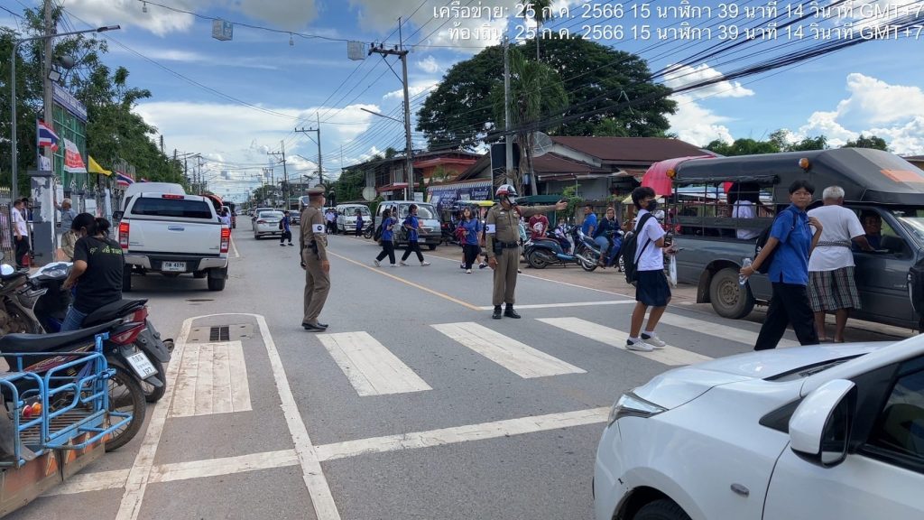 ว.4 อำนวยความสะดวกการจราจรบริเวณหน้าโรงเรียนเทศบาล1 ซึ่งมีผู้ปกครองมาคอยรับนักเรียนเป็นจำนวนมากและคนทั่วไปที่ใช้รถใช้ถนนเพื่อให้เกิดความสะดวกและปลอดภัย