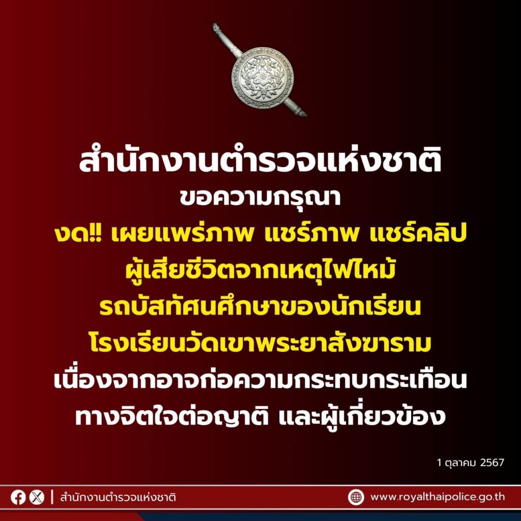 งด!! เผยแพร่ภาพ แชร์ภาพ แชร์คลิป ผู้เสียชีวิตจากเหตุไฟไหม้ รถบัสทัศนศึกษาของนักเรียน โรงเรียนวัดเขาพระยาสังฆาราม