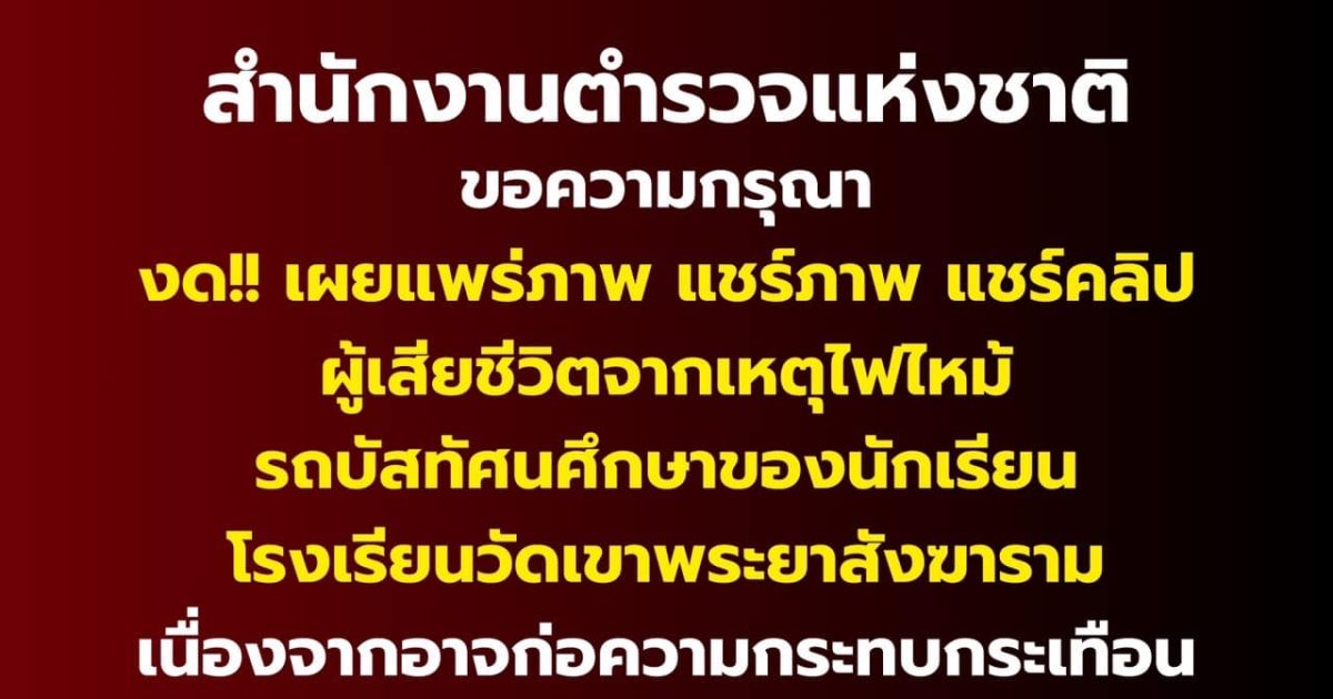 งด!! เผยแพร่ภาพ แชร์ภาพ แชร์คลิป ผู้เสียชีวิตจากเหตุไฟไหม้ รถบัสทัศนศึกษาของนักเรียน โรงเรียนวัดเขาพระยาสังฆาราม