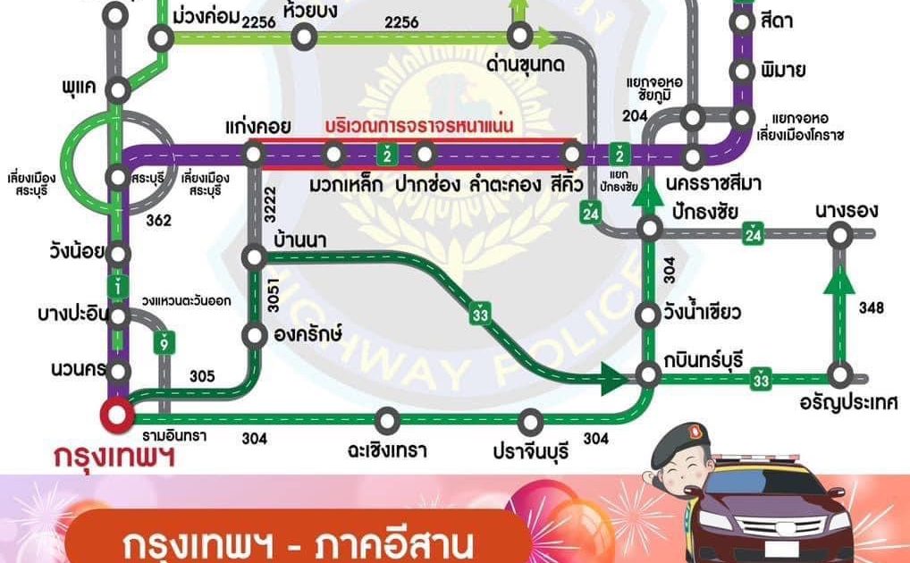 2️⃣ เส้นทางกรุงเทพฯ – จังหวัดฉะเชิงเทรา และใช้ ทล. 304 (อ.พนมสารคาม – อ.กบินทร์บุรี – อ.วังน้ำเขียว – อ.ปักธงชัย) มุ่งหน้าสู่จังหวัดนครราชสีมา